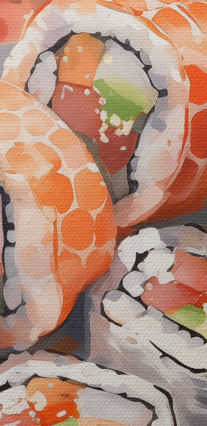 Wyobraź sobie: wchodzisz do kuchni i bum – oto płótno, które praktycznie szepcze “sushi anyone?”. Obraz na płótnie “Plate of Sushi and Sauce” sprawia wrażenie małego ogrodu Zen na ścianie. Te delikatne rolki wyglądają prawie zbyt pięknie, aby je zjeść, ale czy nie sprawiają, że po prostu pragniesz nocy sushi? Subtelność natury zmieszana z ulubioną przez wszystkich rozkoszą wielkości kęsa – to jak wyrafinowana kolacja, bez sprzątania. Idealne do dodania odrobiny smaku do każdej przestrzeni, to dzieło sztuki z pewnością rozpocznie kilka pysznych rozmów.