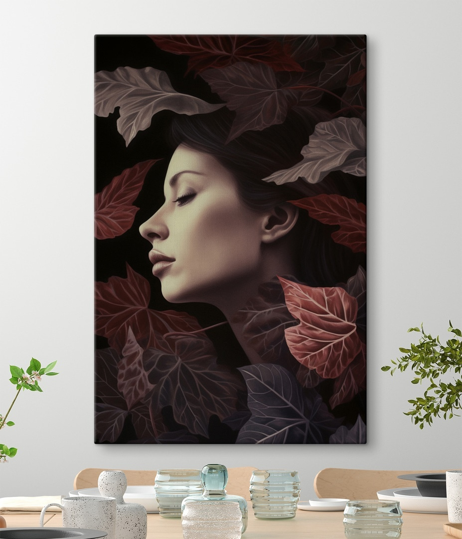 Wprowadź odrobinę jesieni do swojego domu dzięki obrazowi na płótnie “Serenity amidst autumn leaves”. Ten obraz oddaje spokojny moment, w którym natura spotyka się z introspekcją. Wyobraź sobie, że wchodzisz do pokoju i witają Cię ciepłe odcienie rdzy i głębokiej czerwieni, które bez wysiłku otulają Cię przytulnym uściskiem. Spokojna ekspresja postaci harmonijnie łączy się z misternymi liśćmi, przywołując słodkie marzenia o rześkich spacerach po parku. Idealny do cichego zakątka lub jako oszałamiający punkt centralny, to płótno zaprasza do rozmowy i podziwu. Kto nie chciałby dzieła sztuki, które szepcze historie o spokojnych jesiennych dniach? Poczuj delikatne westchnienie jesieni za każdym razem, gdy na nie spojrzysz – słodkie, spokojne i po prostu magiczne.