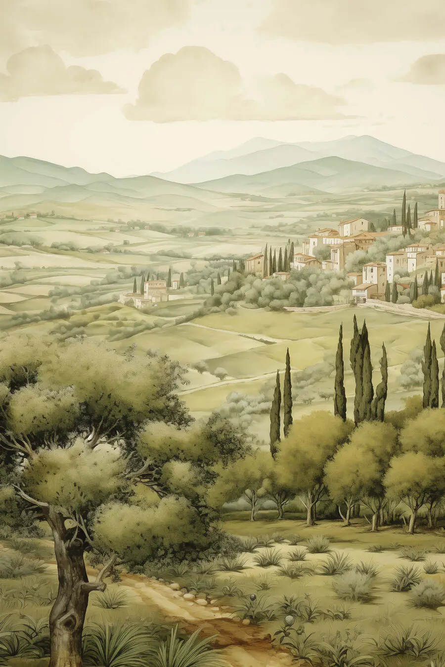 Przekształć dowolny pokój w spokojne miejsce dzięki temu wspaniałemu drukowi na płótnie. Wyobraź sobie spokojny krajobraz wypełniony łagodnymi wzgórzami, wysokimi drzewami kołyszącymi się na wietrze i uroczymi budynkami położonymi w oddali. Ta grafika wnosi kawałek spokoju natury prosto do twojej przestrzeni. Idealny do marzeń na jawie, to tak, jakby chwycić filiżankę kawy i spojrzeć na niekończący się horyzont. Dodaje łagodnego klimatu, dzięki czemu nadaje się na przytulne wieczory lub jasne, słoneczne poranki. Idealny na każdą ścianę, jest wspaniałą ucieczką, gdy potrzebujesz odrobiny spokoju.