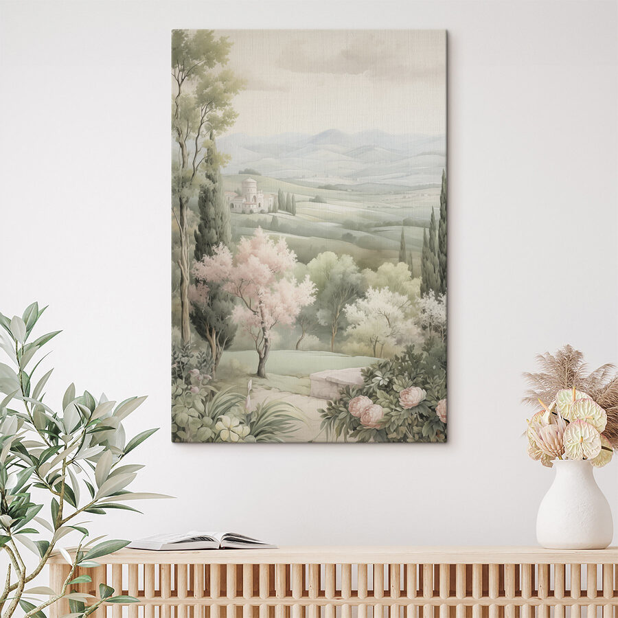 Wyobraź sobie, że wkraczasz w miękki, pasterski sen z tym “Obraz Landscape with Trees and a Building”. To jak posiadanie własnego sekretnego ogrodu – wprost na ścianie. Bujna zieleń, figlarny rumieniec różowych kwiatów i przytulny mały budynek tworzą poczucie spokoju. Być może jest to kryjówka, w której zaczynają się epickie powieści – lub po prostu miejsce, w którym tracisz stres po długim dniu. Powieś go, niech zabierze Cię do spokojnej ucieczki. Natura bez robaków i bałaganu? Wchodzę w to. Idealny na chwile zen lub odrobinę kaprysu w każdym pomieszczeniu.