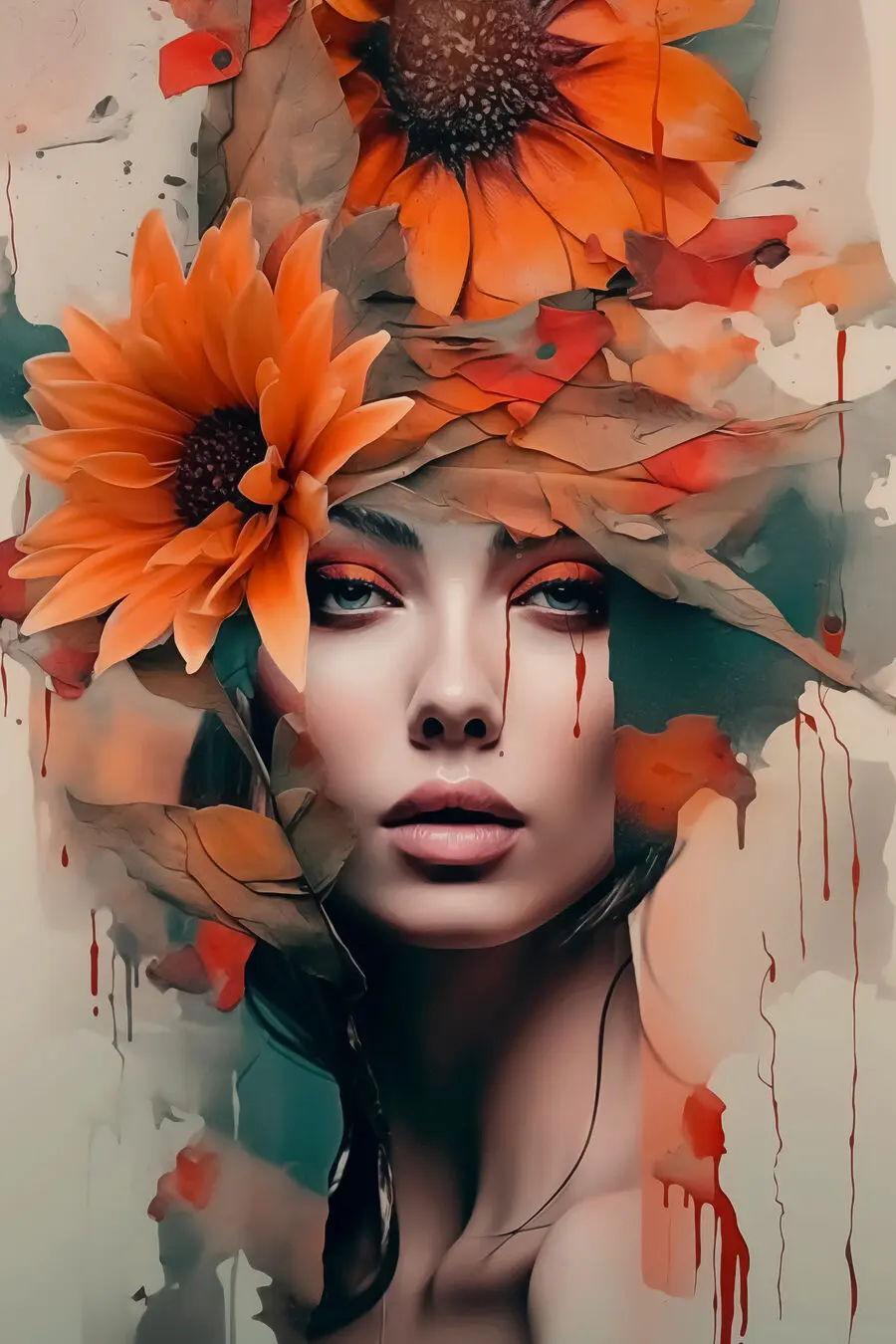 Wyobraź to sobie: uderzające płótno, na którym sztuka spotyka się z emocjami – “Kobieta z kwiatami we włosach”. To dzieło nie tylko wisi na ścianie; ono rozkwita. Jej oczy, głębokie i rozmarzone, niemal szepczą historie. A te żywe kwiaty? To tak, jakby właśnie zostały zerwane z bajkowej łąki. Idealne dla każdego, kto chce dodać odrobinę uroku do swojej przestrzeni. Jedno spojrzenie i zatracasz się w myślach, być może marząc o chodzeniu boso po polach polnych kwiatów. To dzieło, które pobudza do rozmowy i rozgrzewa serce.