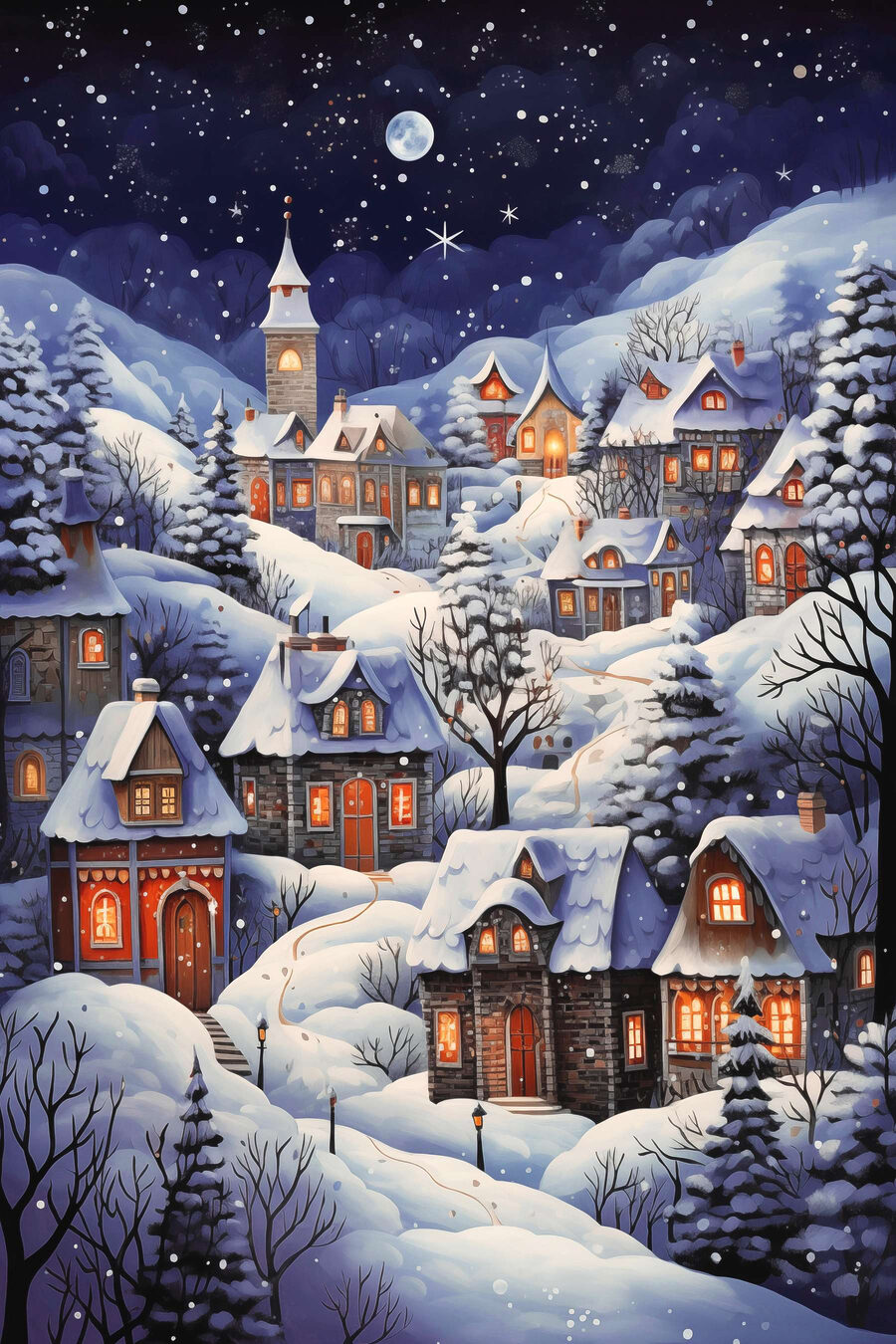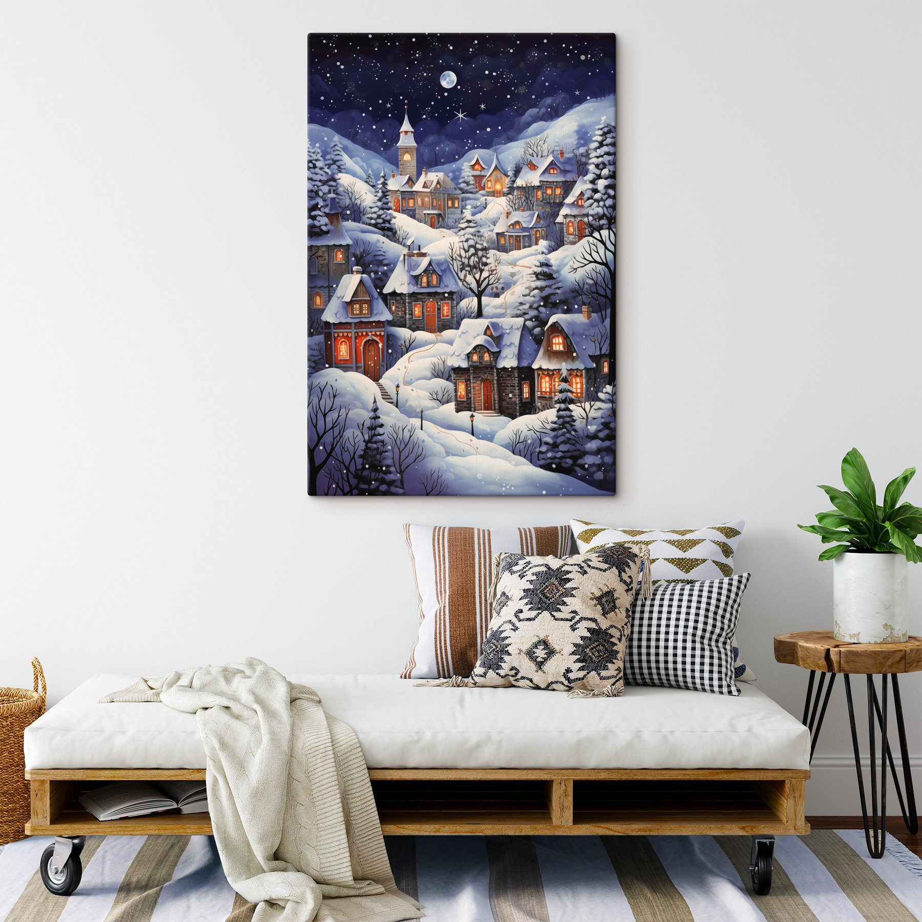 Wkrocz do sennej zimowej krainy czarów dzięki temu obrazowi “Obraz Painting of a Snowy Village”. Wyobraź sobie, że popijasz gorące kakao, patrząc na przytulne domki położone pod kocem puszystego śniegu. Wioska świeci ciepłym blaskiem, migocząc na tle gwiaździstej nocy – prawie czujesz się, jakbyś wędrował przez świąteczną bajkę! Idealna na chłodne noce, kiedy chcesz poczuć się otoczony radością i spokojem. Powieszenie tej pięknej dekoracji na ścianie doda uroku i magii każdemu zakątkowi domu.