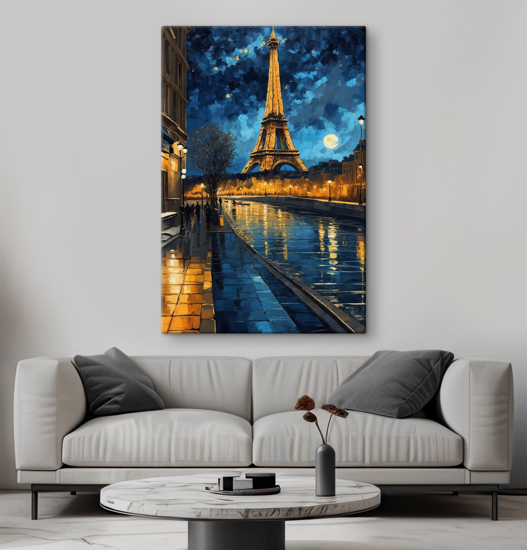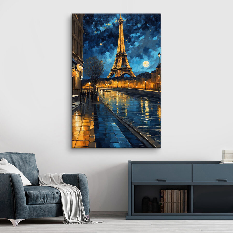 Odmień każdą przestrzeń dzięki temu oszałamiającemu drukowi na płótnie przedstawiającemu piękną scenę uliczną wraz z dużą wieżą rozświetlającą nocne niebo. To jak przeniesienie małego kawałka Paryża prosto do salonu. Wyobraź sobie popijanie kawy, wpatrując się w te urocze odbicia na mokrym chodniku – mowa o przytulnych wibracjach! To dzieło z pewnością pobudzi do rozmów, zainspiruje do marzeń, a może nawet sprawi, że ktoś rozważy spontaniczną wycieczkę. Idealny do dodania uroku pustym ścianom, to tak, jakby miasto szeptało historie o romansach i przygodach, które tylko czekają, aby się nimi podzielić.