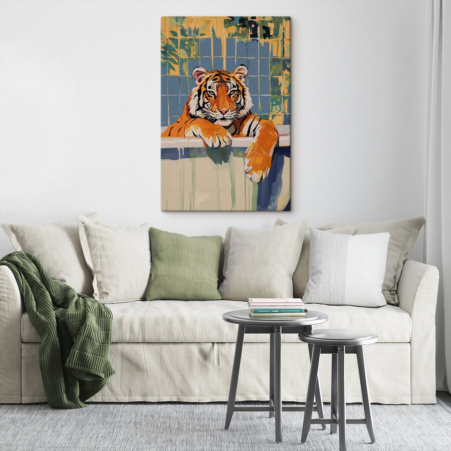 Wyobraź to sobie: tygrys wylegujący się w wannie, nonszalancki i bardzo dystyngowany. Jest dziki, a jednocześnie dziwnie uspokajający, zachwycająca sprzeczność na ścianie. Wyobraź sobie, że ten odważny wydruk na płótnie kradnie show w Twoim salonie lub nawet biurze. Goście na pewno będą się śmiać – co jest lepszego niż widok majestatycznego stworzenia biorącego kąpiel? Życie jest zbyt krótkie na nudny wystrój. Dzięki żywym kolorom i zabawnej atmosferze, ten kawałek dodaje odrobinę przygody do każdej przestrzeni. To nie tylko sztuka; to początek rozmowy.