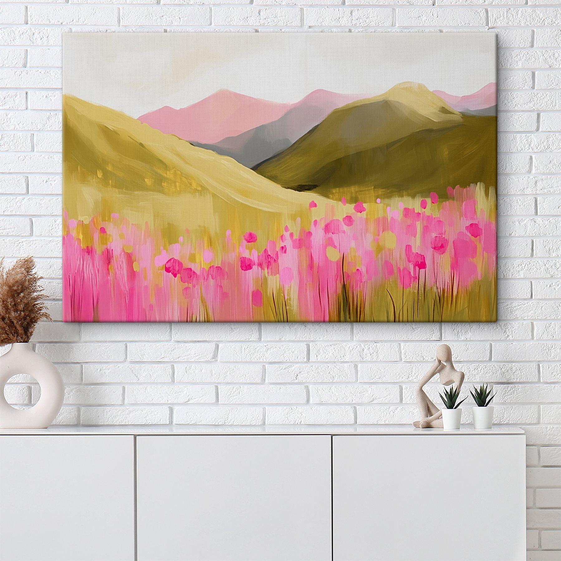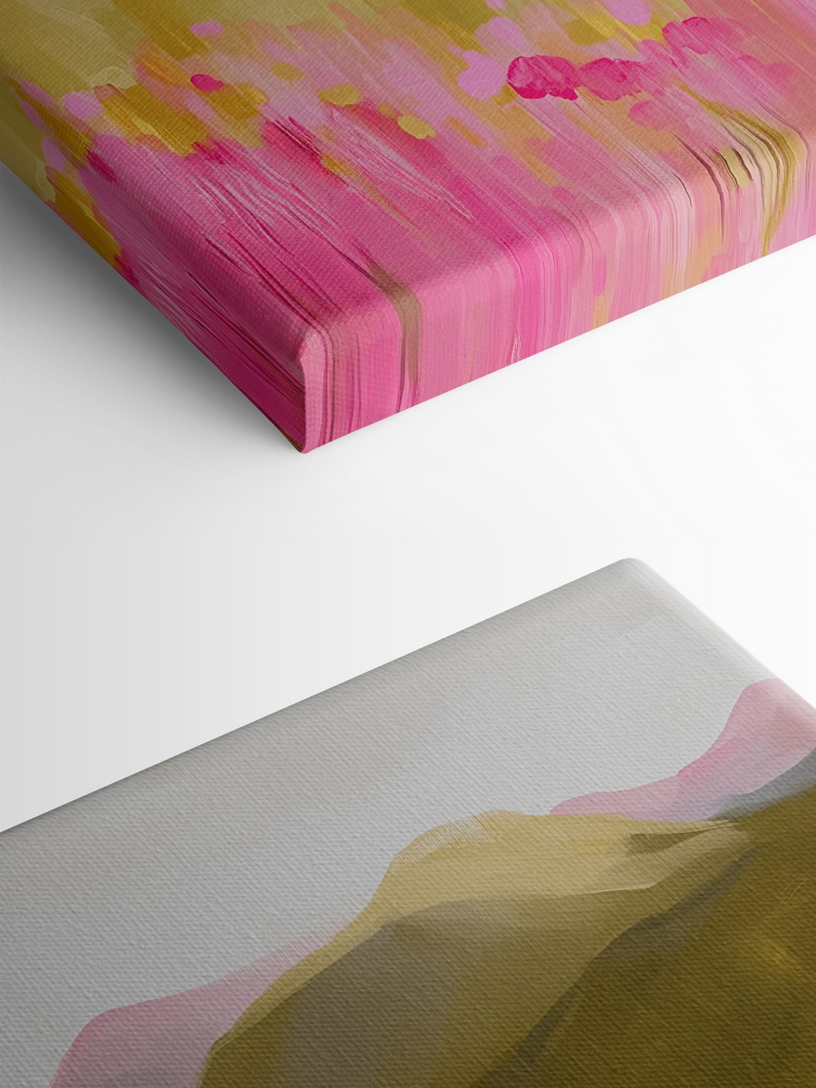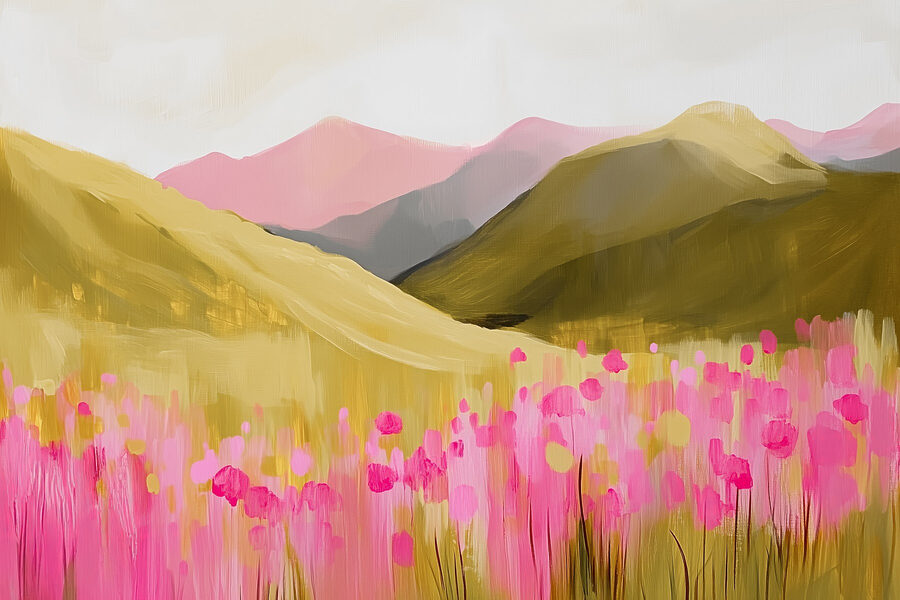 Wyobraź sobie, że wchodzisz do pokoju i czujesz się, jakbyś właśnie wszedł na zalane słońcem pole różowych kwiatów – bez kataru siennego! Ten wydruk na płótnie przedstawia pogodny i marzycielski krajobraz, łącząc delikatne odcienie różu z łagodnymi odcieniami ziemi. To jak powiew świeżego powietrza na ścianach, idealny dla tych, którzy pragną odrobiny natury bez opuszczania wygodnej sofy. Idealny do dodania odrobiny koloru i szczypty spokoju do każdej przestrzeni, to grafika, która szepcze “zrelaksuj się i ciesz się”.