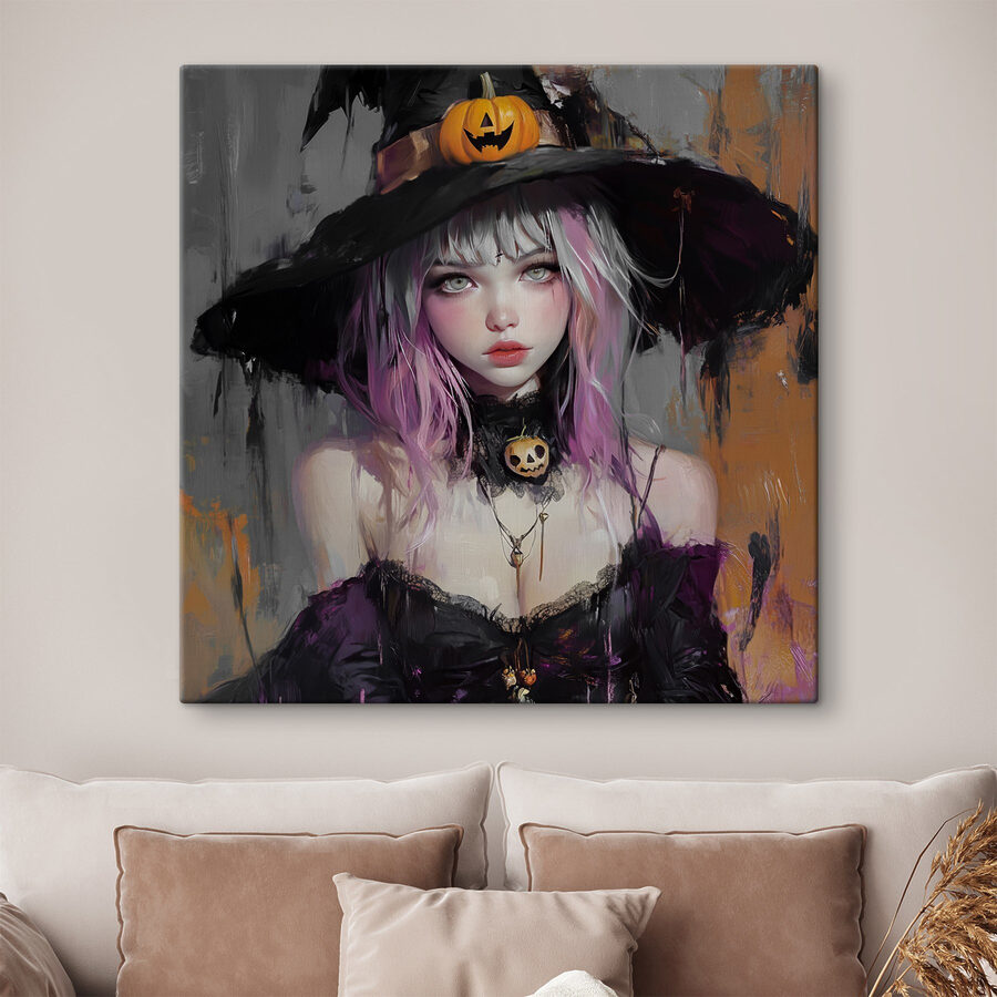 Dodaj szczyptę magii dzięki temu czarującemu wydrukowi na płótnie! Przedstawiający tajemniczą dziewczynę ze smykałką do mody, natychmiast przyciąga wzrok i pobudza wyobraźnię. Jej kapryśny kapelusz, zwieńczony bezczelną dynią, dodaje zabawnego akcentu Halloween, dzięki czemu jest idealny na każdą porę roku. Wyobraź sobie ten uderzający element na ścianie, dodający intrygi i kaprysu. To tak, jakby mieć gawędziarza w swoim salonie – kto potrzebuje telewizji z taką sztuką?