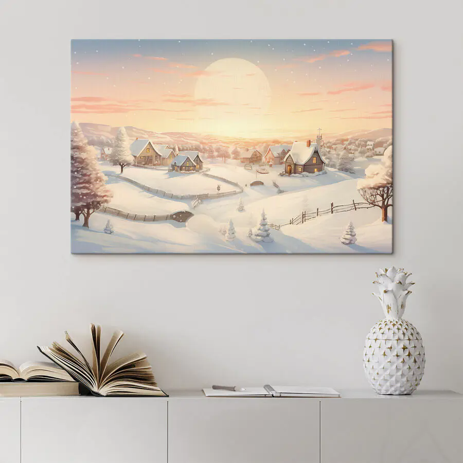 Odmień swoją przestrzeń dzięki oszałamiającemu obrazowi na płótnie “Snow Covered Village”. Wyobraź to sobie: przytulna zimowa kraina czarów, w której płatki śniegu tańczą wokół uroczych domków, spokojna scena, która przypomina wejście do bajki. Kolory łagodnieją wraz ze wschodem słońca, otulając wszystko ciepłem, nawet gdy na zewnątrz jest zimno. Jest to rodzaj dzieła, które zachęca do marzeń o gorącym kakao przy ognisku lub spacerze po cichym, zaśnieżonym krajobrazie. Niezależnie od tego, czy wisi w salonie, czy w biurze, dodaje odrobinę spokojnego uroku. Poza tym, czy jest coś bardziej zachęcającego niż ośnieżona wioska? Poważnie, może to po prostu zainspirować do poważnych zimowych dekoracji!