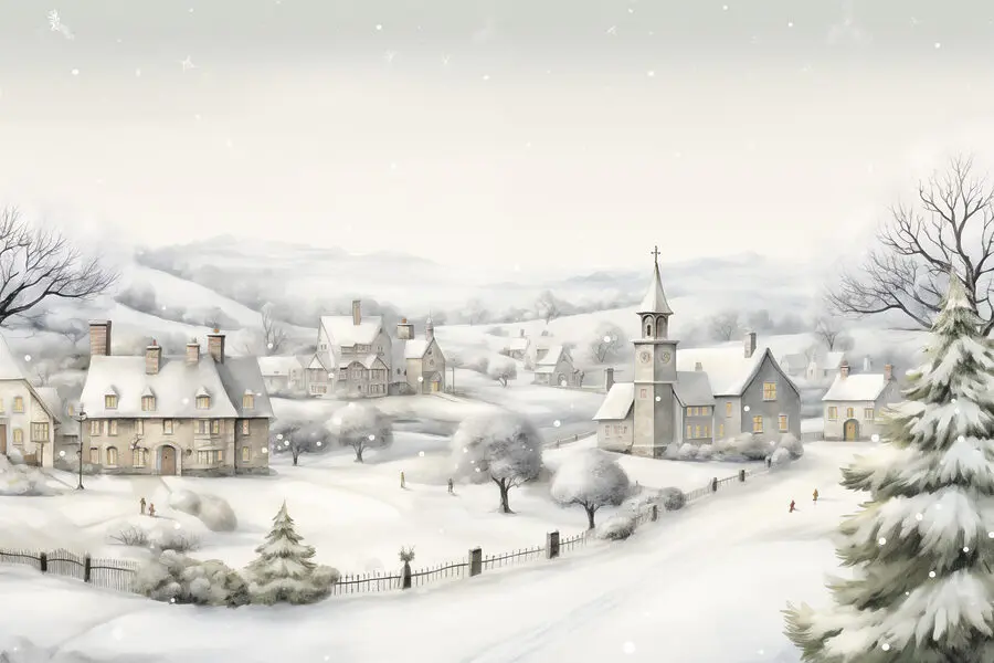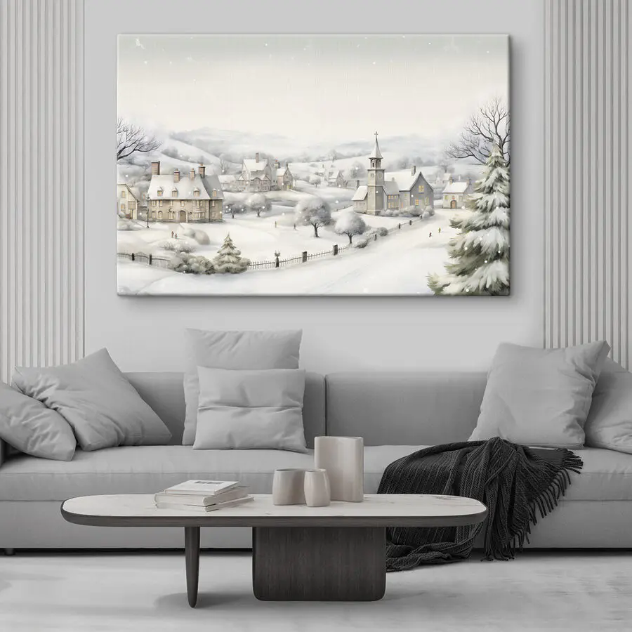 Przekształć swoją przestrzeń w zimową krainę czarów dzięki temu uroczemu drukowi na płótnie przedstawiającemu pokrytą śniegiem wioskę. To jak migawka z przytulnej bajki, w której dzwoneczki kościelne brzęczą, a płatki śniegu tańczą w powietrzu. Wyobraź sobie, że wtulasz się w ciepły napój, wpatrując się w te urocze domki i delikatnie padający śnieg. Wzbudza to poczucie nostalgii – być może myśli o lepieniu bałwana lub popijaniu gorącego kakao przy ognisku. Ten obraz to nie tylko sztuka; to okno na spokojne chwile. Idealny do każdego pomieszczenia, które potrzebuje odrobiny zimowej magii!