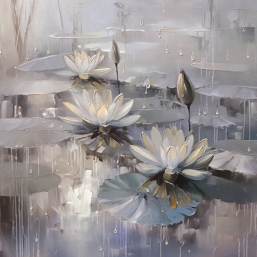 Zanurz się w spokojnej ucieczce z tym wspaniałym wydrukiem na płótnie przedstawiającym kwiaty tańczące na stawie. Łagodne odcienie i delikatne krople wody tworzą orzeźwiającą atmosferę – idealną na te dni, kiedy potrzeba odrobiny spokoju. Wyobraź sobie, że ten obraz zdobi Twoją ścianę, przekształcając nudne miejsce w spokojne odosobnienie. Znajomi pomyślą, że masz oko do sztuki, a ty po prostu usiądź wygodnie i rozkoszuj się spokojem, jaki przynosi. Poza tym, kto nie pokochałby odrobiny natury we wnętrzu? To jak posiadanie mini ogrodu zen bez kłopotów z rzeczywistymi roślinami. Chwyć go i pozwól tym pięknym kwiatom rozjaśnić swoją przestrzeń!