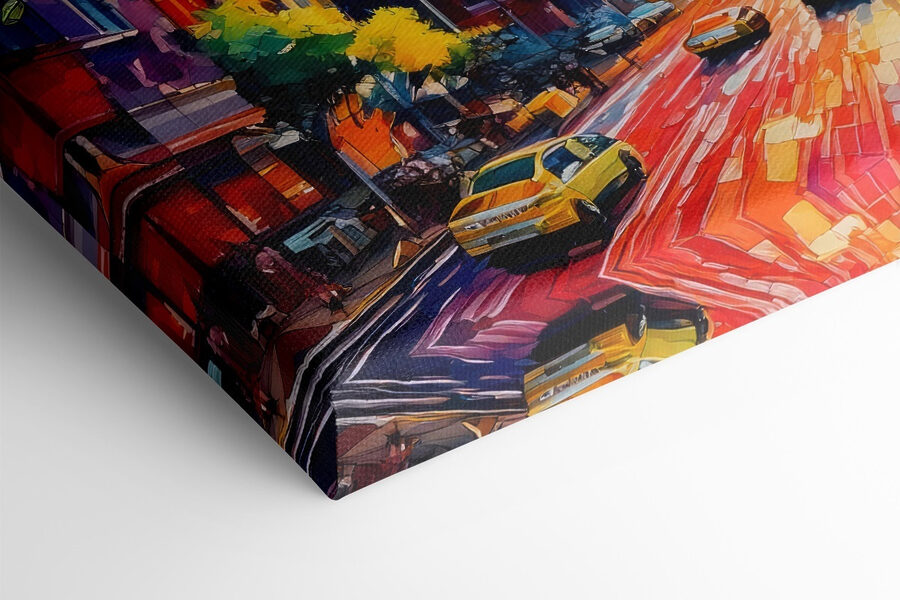 Wyobraź to sobie na swojej ścianie: tętniącą życiem ulicę miasta, pełną samochodów i wysokich budynków pomalowanych w kalejdoskopie kolorów. To tak, jakby trzymać w domu kawałek miejskiej magii. Idealny dla marzycieli, którzy lubią wystrój równie żywy jak poranna kawa. Poczuj zgiełk miasta bez hałaśliwego chaosu. Usiądź na kanapie, pozwól oczom wędrować po ulicach i wyobraź sobie życie, w którym przygoda czeka za każdym rogiem. Nie potrzeba mapy – wystarczy miłość do miejskich krajobrazów, które przemawiają do duszy.