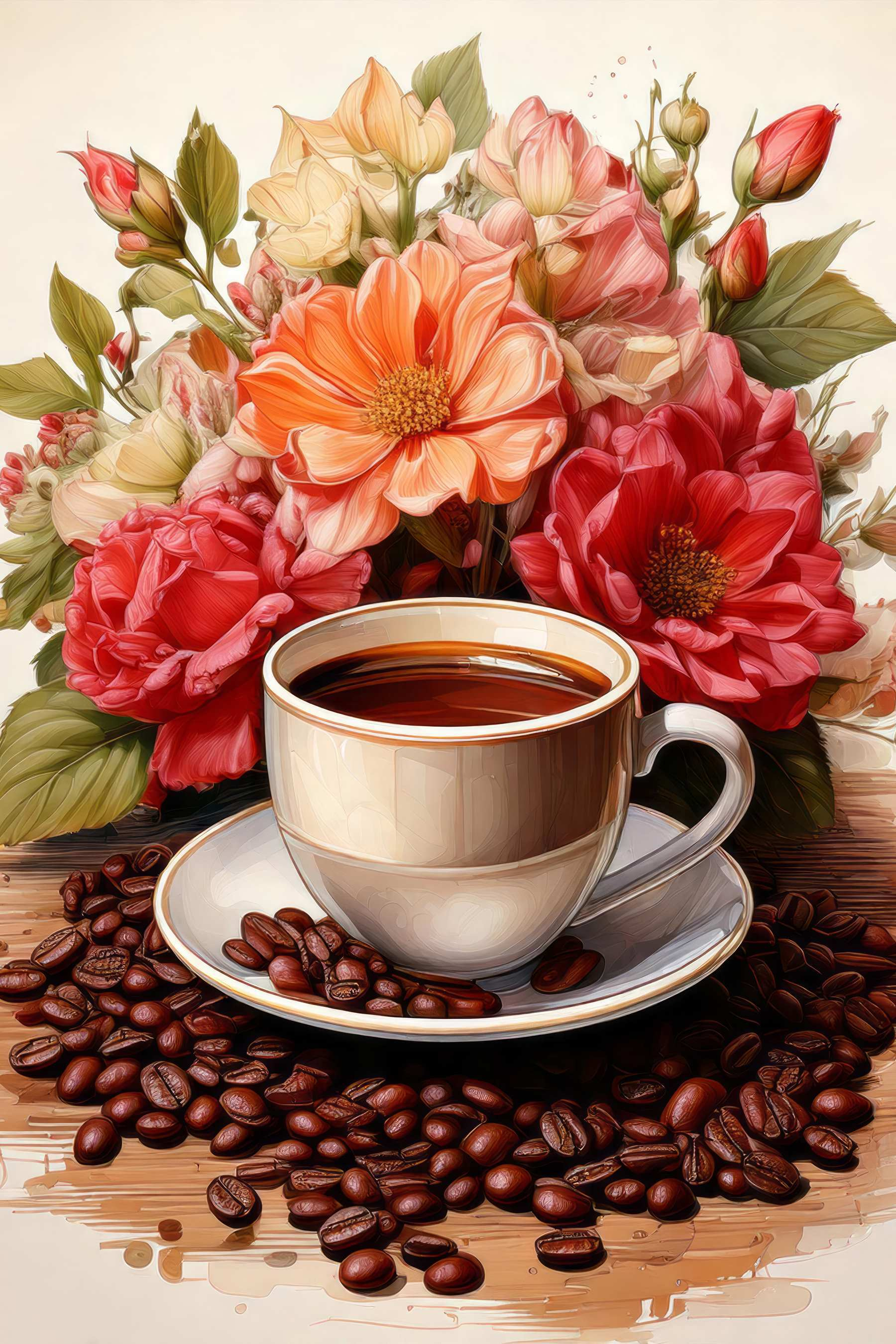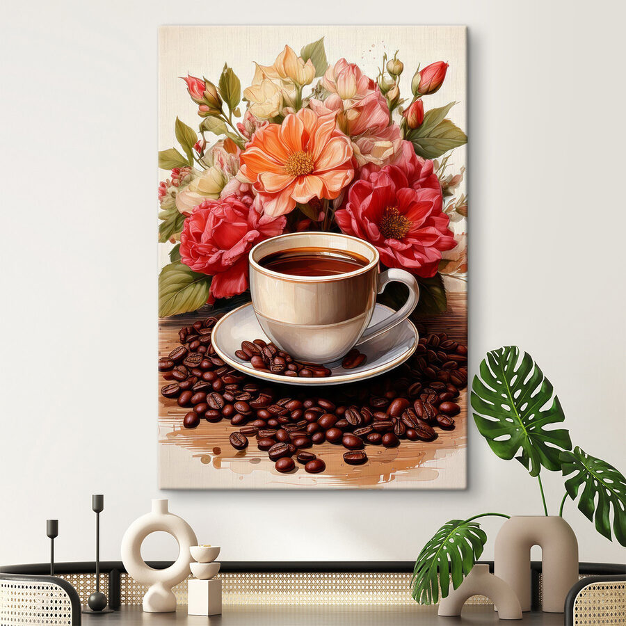 Wypij łyk z filiżanki rozkoszy dzięki temu obrazowi na płótnie “Filiżanka kawy i kwiaty”. Wyobraź sobie, że każdego ranka budzisz się w tej rozkosznej scenerii – bogaty aromat unosi się w pokoju. Ciepłe odcienie porannej kawy flirtują z żywymi kwiatami. To jak uścisk dla ścian. Idealny do każdego zakątka, który potrzebuje odrobiny kaprysu i ciepła, szepcze “poświęć chwilę, oddychaj”. Idealny do ucieczki od pośpiechu, z uśmiechem – natychmiastowy poprawiacz nastroju. Kofeina dla duszy, nie wymaga parzenia.