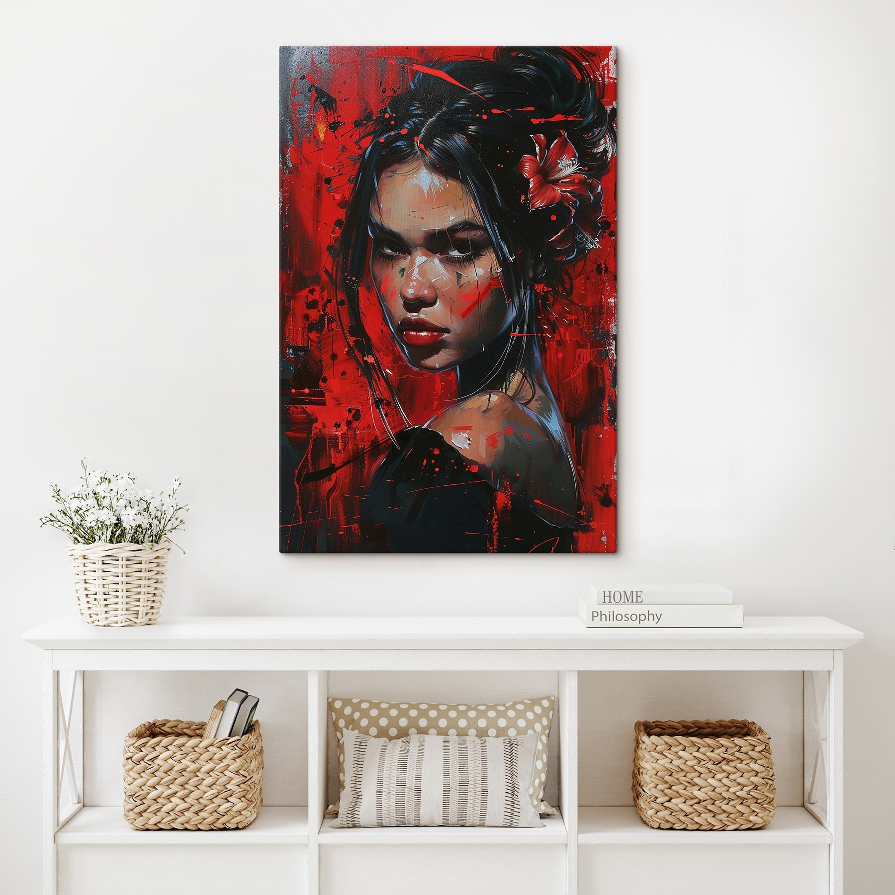 Zanurz się w odważnej energii tego wydruku na płótnie przedstawiającego uderzającą kobietę na ognistym tle czerwonej farby. Wygląda jak wyciągnięta prosto ze snu artysty, emanując emocjami i głębią. Wyobraź sobie to dzieło wiszące w przytulnym zakątku – to rodzaj sztuki, która pobudza do rozmów, prawda? Przyjaciele pochylą się, przyciągnięci żywymi kolorami i historią kryjącą się za tym nawiedzającym spojrzeniem. Sprawia, że każda przestrzeń czuje się żywa, jakby oddychała kreatywnością. Idealny do dodania odrobiny osobowości do salonu lub biura, to nie tylko wystrój, to nastrój. Poważnie, kto nie chciałby dzielić swojej przestrzeni z takim zadziornym pięknem?