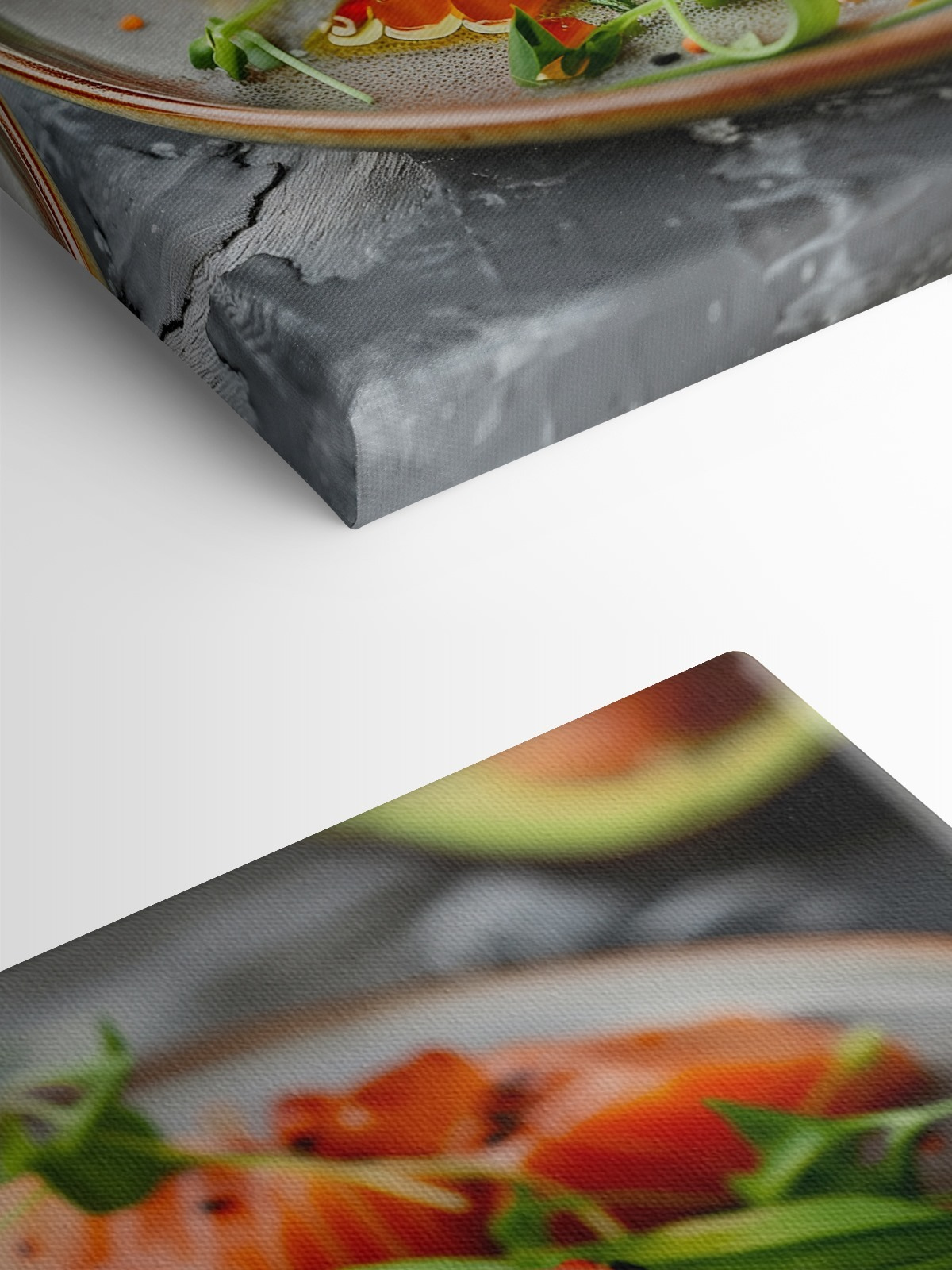 Przekształć każdą ścianę w kulinarną rozkosz dzięki temu oszałamiającemu wydrukowi na płótnie “Plate of Food on a Table”. Wyobraź sobie, że wchodzisz do swojej kuchni lub jadalni, a tam jest – przepyszna wizualna uczta ze świeżego łososia i żywego awokado, artystycznie ułożonych. To tak, jakby twoje posiłki uśmiechały się do ciebie! Idealny dla smakoszy lub każdego, kto ceni odważne kolory i piękne prezentacje. Ten element dodaje odrobiny elegancji, jednocześnie pobudzając apetyt na pyszne potrawy. To nie tylko dekoracja; to zaproszenie do delektowania się każdą chwilą, a może nawet zainspirowania przyjęcia lub dwóch. Któż nie chciałby mieć na swoich ścianach tego wspaniałego akcentu smakowego?