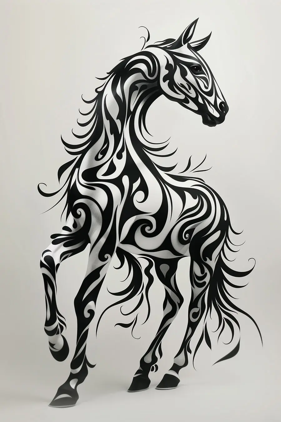 Wkrocz do świata, w którym sztuka galopuje wprost ze ściany! Ten oszałamiający czarno-biały nadruk konia, wirujący jak złapany przez delikatną bryzę, dodaje odrobinę dzikiej elegancji do każdej przestrzeni. Wyobraź sobie, że popijasz poranną kawę, spoglądasz na to piękno i czujesz przypływ inspiracji – jakbyś mógł dziś podbić świat (lub przynajmniej uporać się z praniem). Skomplikowany design sprawia, że jest to coś więcej niż tylko dekoracja; jest to początek rozmowy, podnoszący nastrój i zaufaj, że będzie pasował do każdego stylu. Idealny dla miłośników zwierząt lub każdego, kto po prostu chce ożywić swoje ściany, ten druk na płótnie wnosi zarówno urok, jak i odrobinę kaprysu do przytulnego kącika. Delikatne przypomnienie o wdzięku natury, ten koń będzie kłusował prosto do twojego serca!