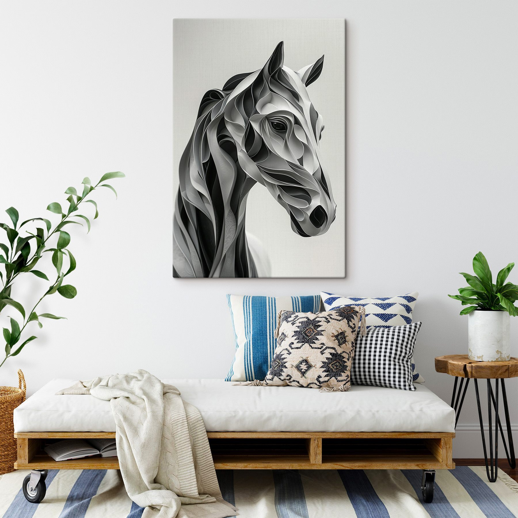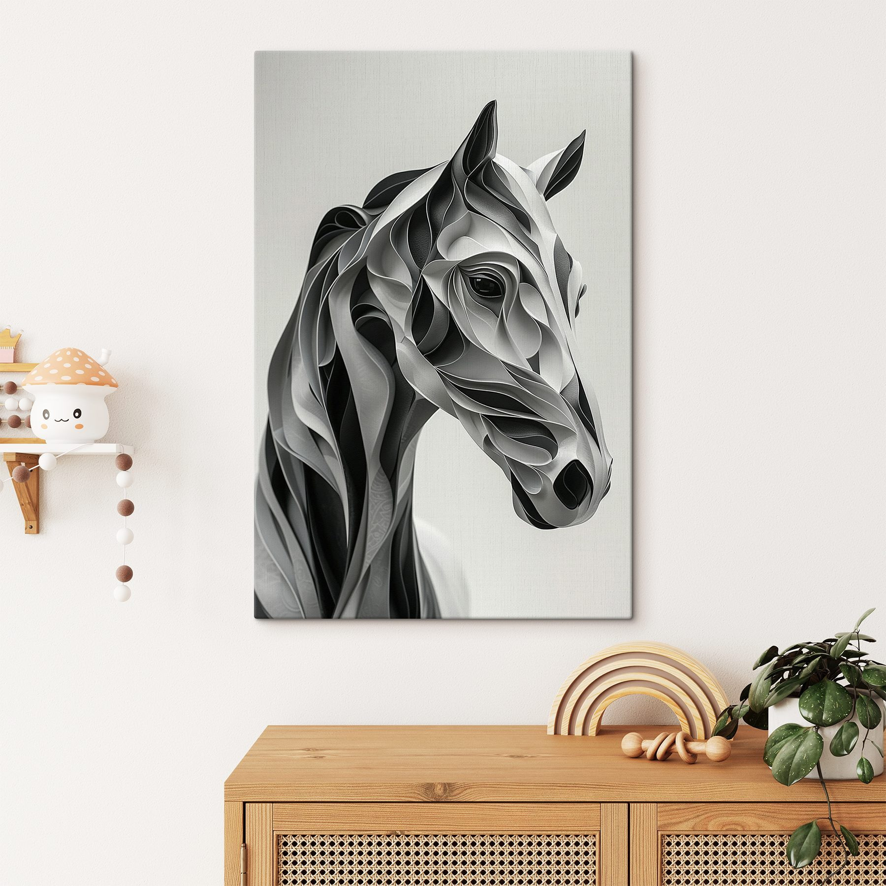 Poznaj idealny początek rozmowy na ścianie: efektowny wydruk na płótnie, który oddaje istotę głowy konia wykonanej z papieru. Jest to sztuka, która szepcze elegancję, a jednocześnie pakuje cios osobowości. Głębokie czernie i biele skręcają się i obracają jak wiatr w grzywie, zapraszając do podziwiania gości, którzy nie mogą powstrzymać się od pochylenia się bliżej. Wyobraź sobie to piękno w swoim salonie – to tak, jakbyś miał wyrafinowanego towarzysza, a nie tylko dekorację. Każde spojrzenie przynosi poczucie spokoju, wywołując marzenia o otwartych polach i galopujących przygodach. To nie tylko obraz, to klimat!