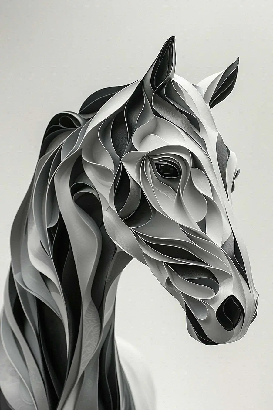 Poznaj idealny początek rozmowy na ścianie: efektowny wydruk na płótnie, który oddaje istotę głowy konia wykonanej z papieru. Jest to sztuka, która szepcze elegancję, a jednocześnie pakuje cios osobowości. Głębokie czernie i biele skręcają się i obracają jak wiatr w grzywie, zapraszając do podziwiania gości, którzy nie mogą powstrzymać się od pochylenia się bliżej. Wyobraź sobie to piękno w swoim salonie – to tak, jakbyś miał wyrafinowanego towarzysza, a nie tylko dekorację. Każde spojrzenie przynosi poczucie spokoju, wywołując marzenia o otwartych polach i galopujących przygodach. To nie tylko obraz, to klimat!