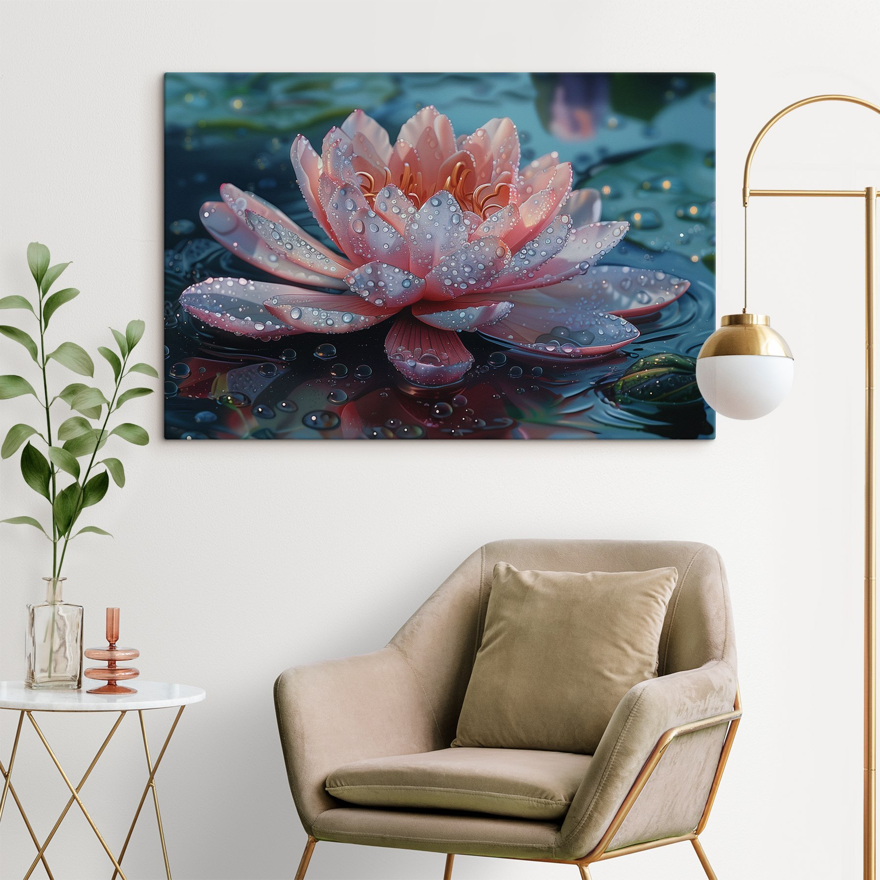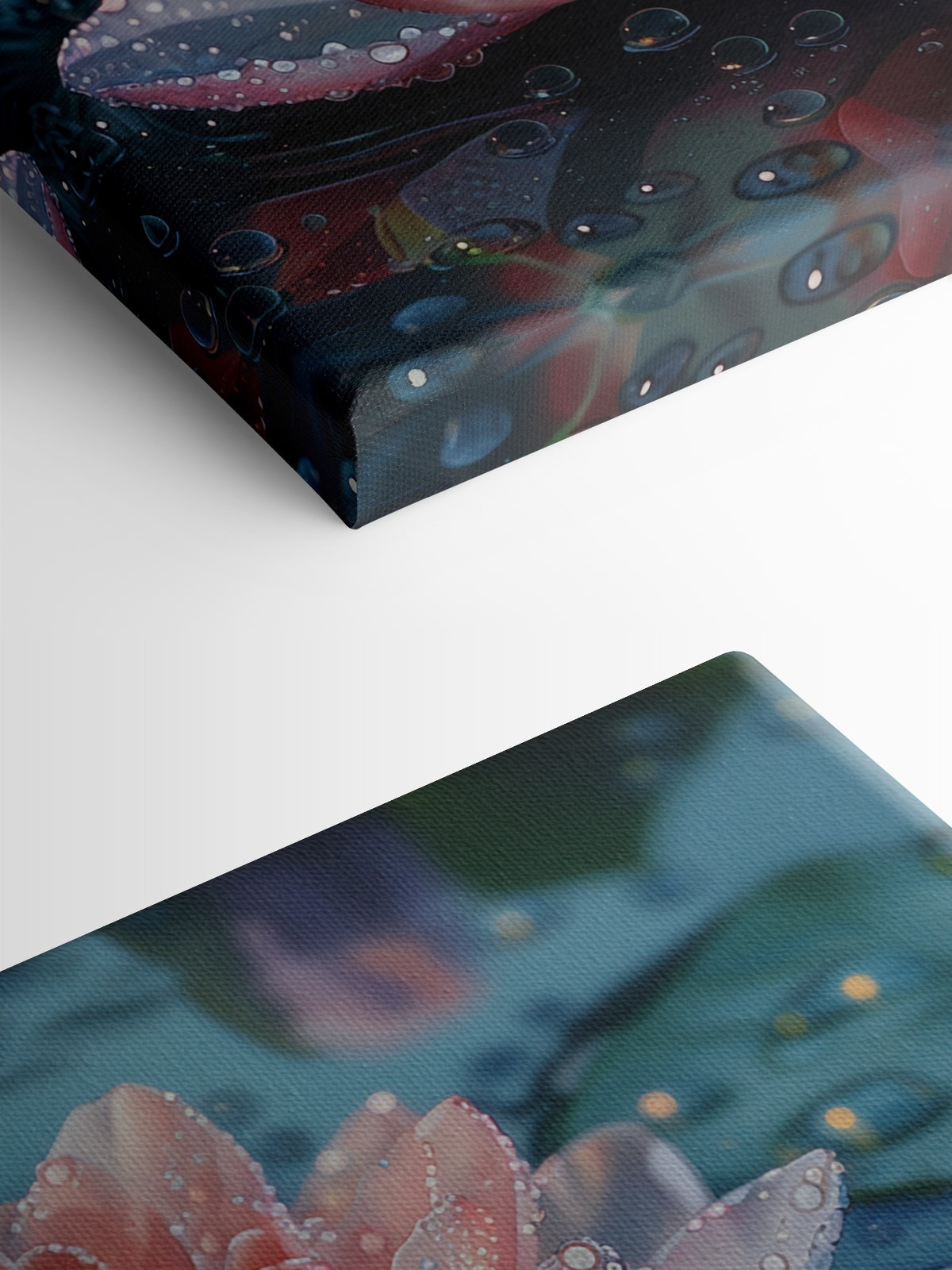 Odmień swoją przestrzeń dzięki temu marzycielskiemu drukowi na płótnie przedstawiającemu różowy kwiat ozdobiony delikatnymi kroplami wody, umieszczony wśród bogatych zielonych liści. Wyobraź sobie, że przechodzisz obok i dostrzegasz to wspaniałe dzieło sztuki – to jak powiew świeżego powietrza w Twoim salonie! Żywe kolory wprowadzają pogodny nastrój, który może uspokoić nawet najbardziej zajęte umysły. Idealnie nadaje się do przytulnych zakątków lub jako centralny punkt w domowym biurze. Plus, te kropelki wody? Dodają odrobinę życia, które sprawia, że wszystko wydaje się nieco bardziej magiczne. Odrobina piękna natury bezpośrednio na ścianie!