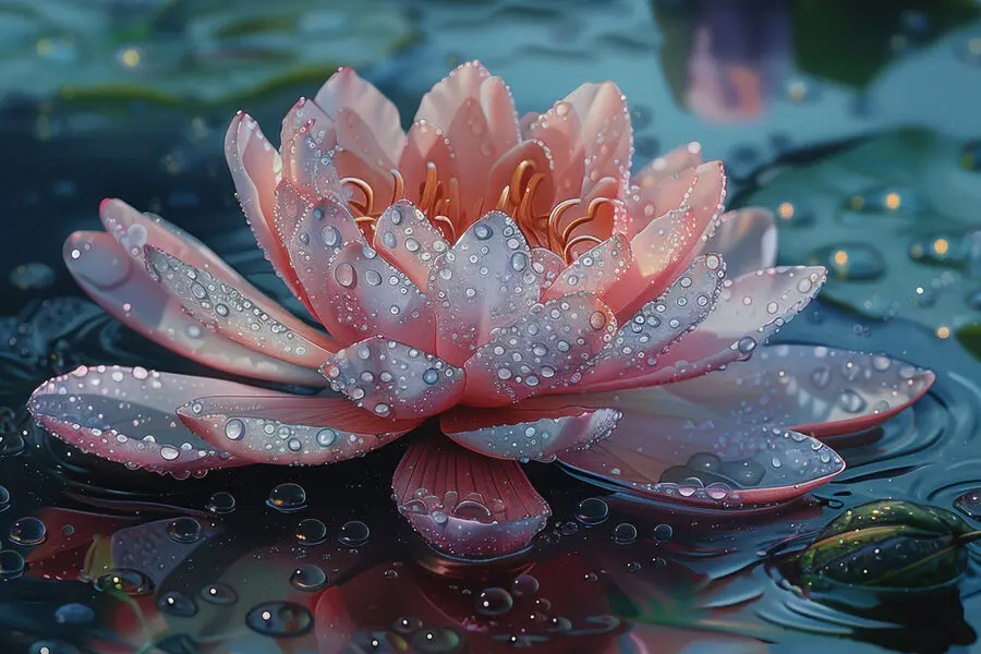 Odmień swoją przestrzeń dzięki temu marzycielskiemu drukowi na płótnie przedstawiającemu różowy kwiat ozdobiony delikatnymi kroplami wody, umieszczony wśród bogatych zielonych liści. Wyobraź sobie, że przechodzisz obok i dostrzegasz to wspaniałe dzieło sztuki – to jak powiew świeżego powietrza w Twoim salonie! Żywe kolory wprowadzają pogodny nastrój, który może uspokoić nawet najbardziej zajęte umysły. Idealnie nadaje się do przytulnych zakątków lub jako centralny punkt w domowym biurze. Plus, te kropelki wody? Dodają odrobinę życia, które sprawia, że wszystko wydaje się nieco bardziej magiczne. Odrobina piękna natury bezpośrednio na ścianie!