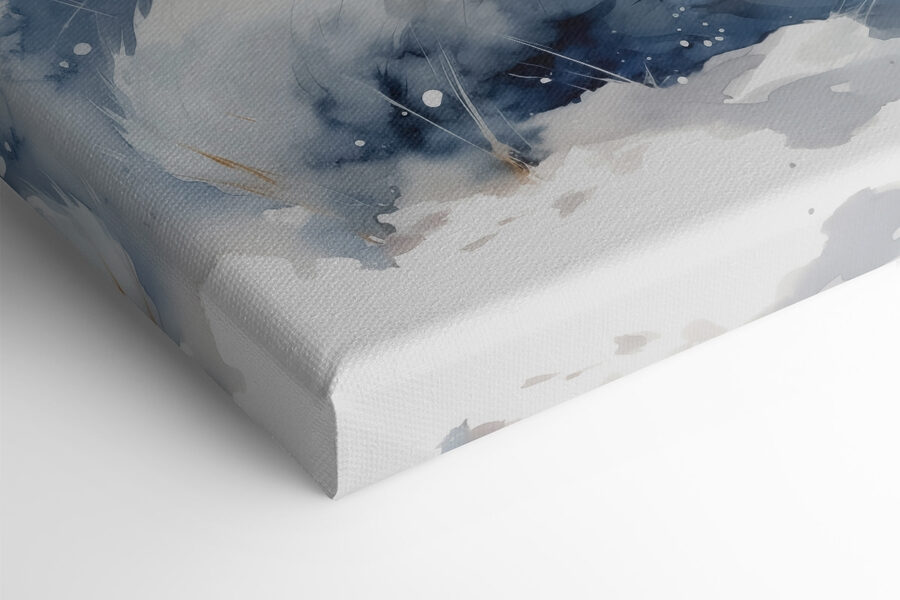 Wyobraź sobie, że wchodzisz do pokoju i znajdujesz uroczego małego liska, skulonego i przytulnego w zimowej krainie czarów. Ten akwarelowy wydruk na płótnie doskonale oddaje ten spokojny moment, z miękkimi błękitami i delikatnymi bielami, które szepczą spokój. To tak, jakby lis zapraszał do wzięcia oddechu i cieszenia się spokojem natury.