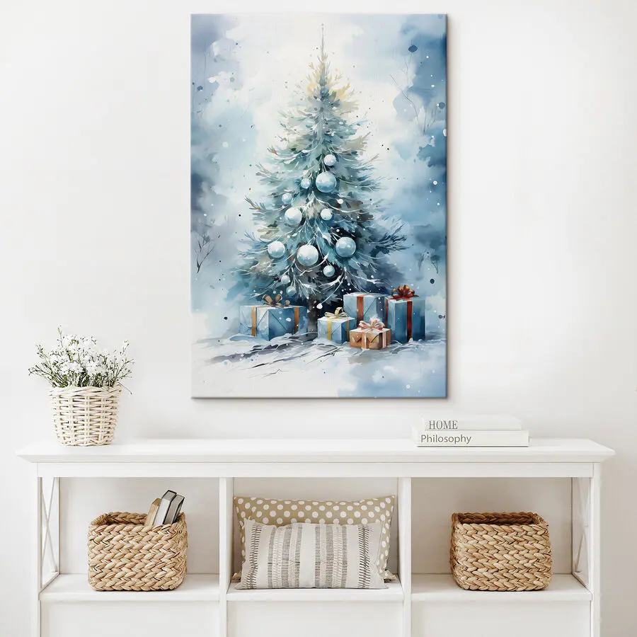 Przekształć swoją przestrzeń w zimową krainę czarów dzięki tej uroczej akwareli przedstawiającej choinkę, błyszczące dekoracje i idealnie zapakowane prezenty. Wyobraź sobie, że zwijasz się w kłębek z przytulnym kocem, gorącym kakao w ręku, podczas gdy ta spokojna scena wnosi odrobinę świątecznej radości na twoje ściany. Miękkie błękity i delikatne pociągnięcia pędzla tworzą uspokajającą atmosferę, idealną do każdego pomieszczenia. To tak, jakby świąteczny duch delikatnie szeptał: “Ciesz się magią!”. Ponadto jest to piękne przypomnienie, że najlepsze prezenty nie zawsze znajdują się pod choinką, ale we wspólnych chwilach. Powieś go w widocznym miejscu i pozwól magii rozwijać się przez cały sezon!