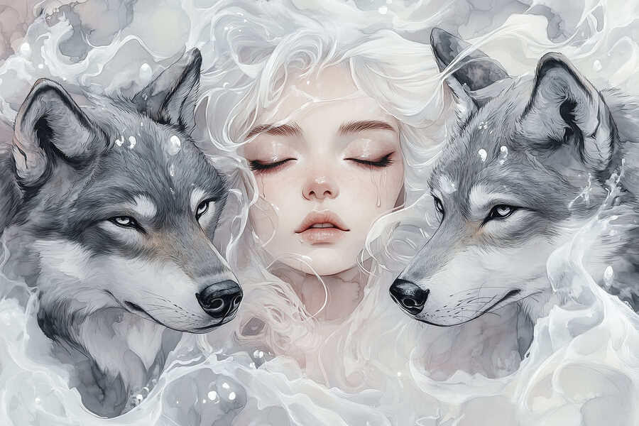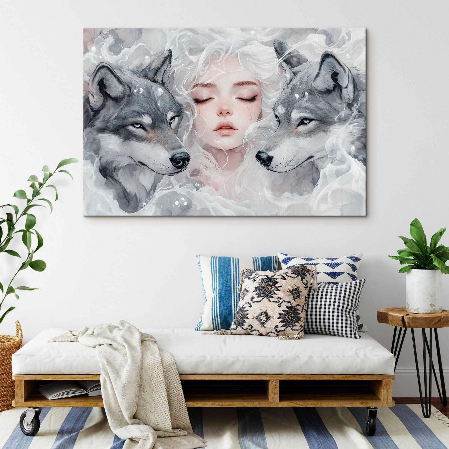 Zanurz się w kapryśnym świecie dzięki temu drukowi na płótnie przedstawiającemu pogodną kobietę z białymi włosami i dwoma czujnymi wilkami. Poważnie, jak uderzające to jest? Wyobraź sobie, że wieszasz ten obraz na ścianie – to jak powiew świeżego powietrza. Te wilki, z ich przenikliwymi oczami, dodają nutkę tajemniczości, podczas gdy delikatne kolory tworzą uspokajającą atmosferę. Idealny do przytulnego kącika do czytania lub pustej ściany, na którą się gapisz. To prawie jak zaproszenie natury do domu, ale bez zabłoconych butów. Każde spojrzenie przynosi odrobinę ucieczki od codziennego zgiełku. Zaufaj, że pobudzi do rozmów, a może nawet do marzeń. Idealny dla każdego, kto ceni sztukę, która opowiada historię bez słowa.