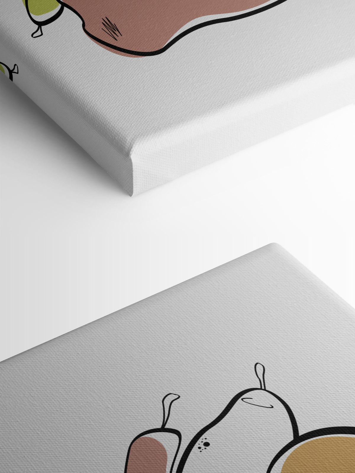 Rozjaśnij każde pomieszczenie tym uroczym wydrukiem na płótnie przedstawiającym grupę żywych gruszek, narysowanych zabawnymi czarnymi liniami. To jak mała owocowa fiesta na ścianie! Wyobraź sobie przytulną kuchnię lub kącik jadalny ozdobiony tym dziwacznym dziełem – każdy z pewnością się uśmiechnie, gdy go zobaczy. Kolory przypominają świeżą letnią sałatkę i wprowadzają przyjazną, domową atmosferę. Idealny dla miłośników jedzenia lub każdego, kto po prostu lubi odrobinę kaprysu. Powieś ją i pozwól, by rozmowa sama się potoczyła – nic tak nie rozkręca pogawędki jak garść uroczych gruszek!