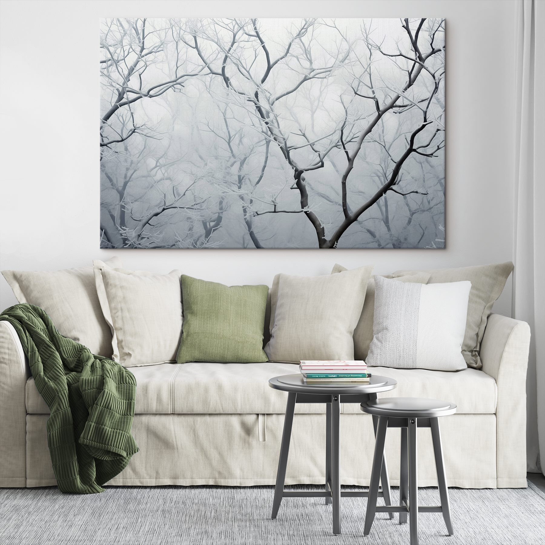 Odmień swoją przestrzeń dzięki temu czarującemu drukowi na płótnie przedstawiającemu gałęzie drzew otulone delikatnym śnieżnym kocem. To jak wkroczenie do spokojnej zimowej krainy czarów za każdym razem, gdy na nią spojrzysz. Wyobraź sobie, że otulasz się przytulnym kocem z ciepłym napojem w dłoni, podczas gdy spokojne gałęzie szepczą opowieści o rześkim powietrzu i miękkich płatkach śniegu. Idealna do wywołania poczucia spokoju, ta grafika idealnie pasuje do każdego pomieszczenia – niezależnie od tego, czy jest to salon, czy cichy kącik do czytania. Delikatne odcienie i misterne detale zachęcają do niekończących się marzeń, dzięki czemu jest to uroczy akcent, który z pewnością przyciągnie wzrok i rozgrzeje serce. Nie zdziw się, jeśli zainspiruje to do przytulnych zimowych spotkań, a nawet spontanicznej walki na śnieżki na zewnątrz. Poczuj piękno natury we wnętrzu dzięki temu oszałamiającemu elementowi, który bez wysiłku przemawia do ducha sezonu.