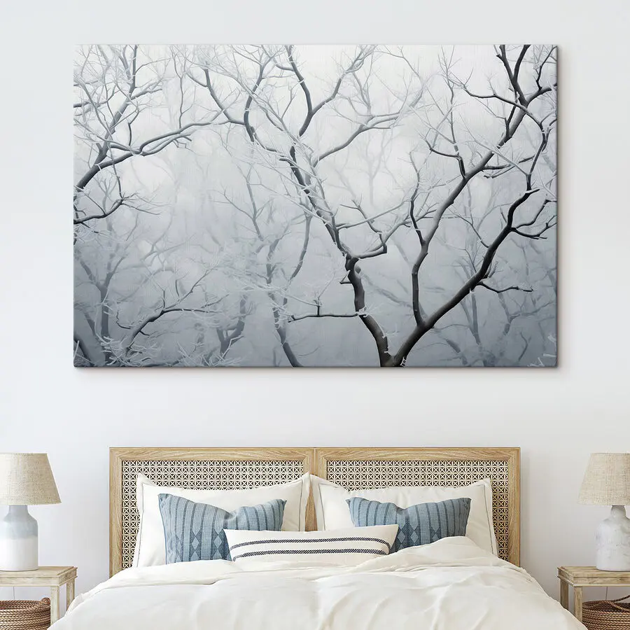 Odmień swoją przestrzeń dzięki temu czarującemu drukowi na płótnie przedstawiającemu gałęzie drzew otulone delikatnym śnieżnym kocem. To jak wkroczenie do spokojnej zimowej krainy czarów za każdym razem, gdy na nią spojrzysz. Wyobraź sobie, że otulasz się przytulnym kocem z ciepłym napojem w dłoni, podczas gdy spokojne gałęzie szepczą opowieści o rześkim powietrzu i miękkich płatkach śniegu. Idealna do wywołania poczucia spokoju, ta grafika idealnie pasuje do każdego pomieszczenia – niezależnie od tego, czy jest to salon, czy cichy kącik do czytania. Delikatne odcienie i misterne detale zachęcają do niekończących się marzeń, dzięki czemu jest to uroczy akcent, który z pewnością przyciągnie wzrok i rozgrzeje serce. Nie zdziw się, jeśli zainspiruje to do przytulnych zimowych spotkań, a nawet spontanicznej walki na śnieżki na zewnątrz. Poczuj piękno natury we wnętrzu dzięki temu oszałamiającemu elementowi, który bez wysiłku przemawia do ducha sezonu.