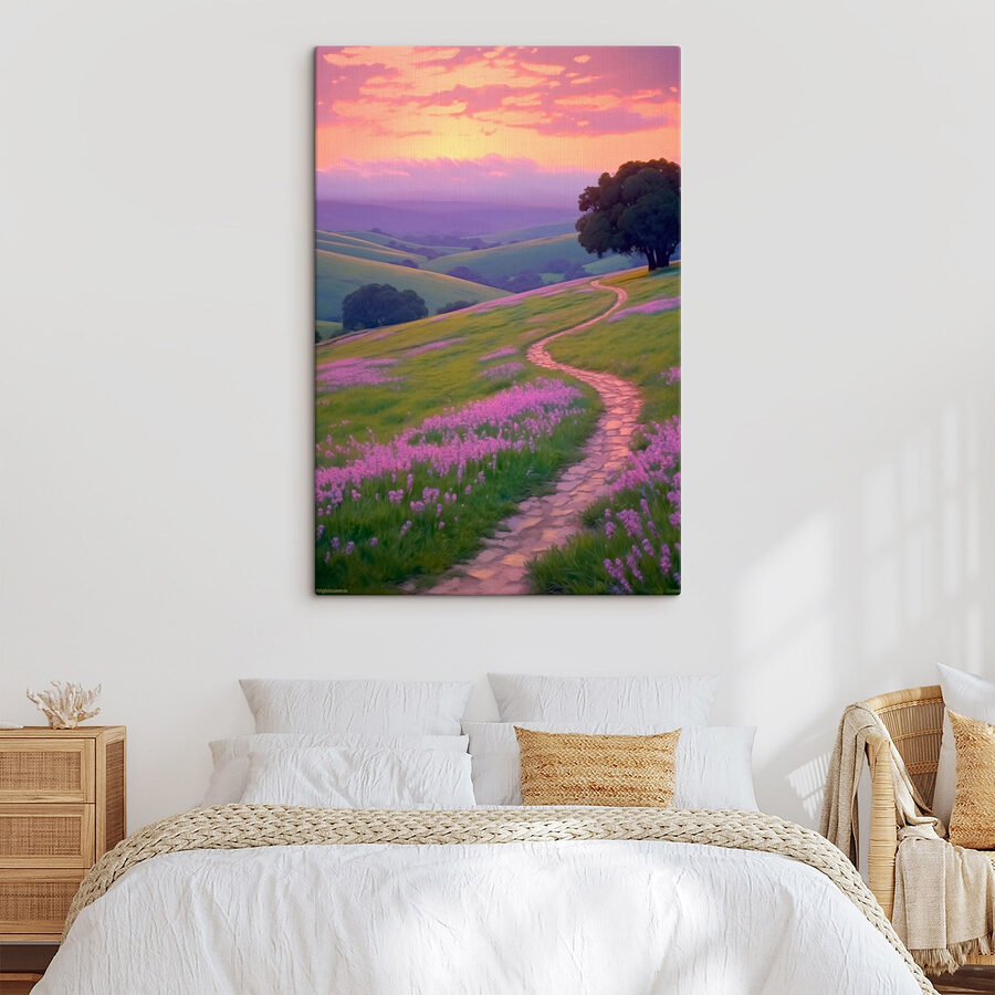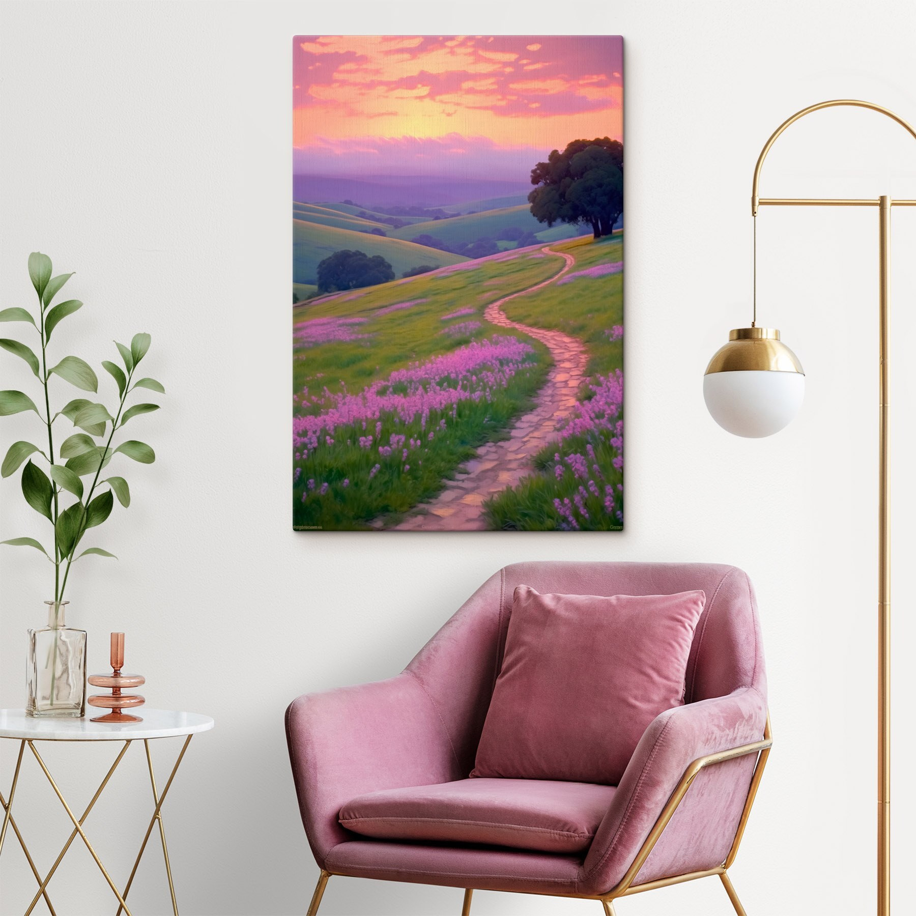 Wyobraź sobie spacer oświetloną słońcem ścieżką, otoczoną żywymi fioletowymi kwiatami kołyszącymi się delikatnie na wietrze. Ten wydruk na płótnie “Path through a Field of Purple Flowers” pięknie oddaje ten błogi moment. To jak mała ucieczka na łono natury – idealna do rozjaśnienia salonu lub dodania spokojnego akcentu do przytulnego kącika. Wyobraź to sobie: przyjaciele zbierają się, śmiech wypełnia powietrze, a ściany ożywają kolorami i radością. To nie tylko sztuka, to klimat! Delikatne odcienie zachęcają do wyciszenia, sprawiając, że każde spojrzenie staje się mini wakacjami. Kto by tego nie chciał?