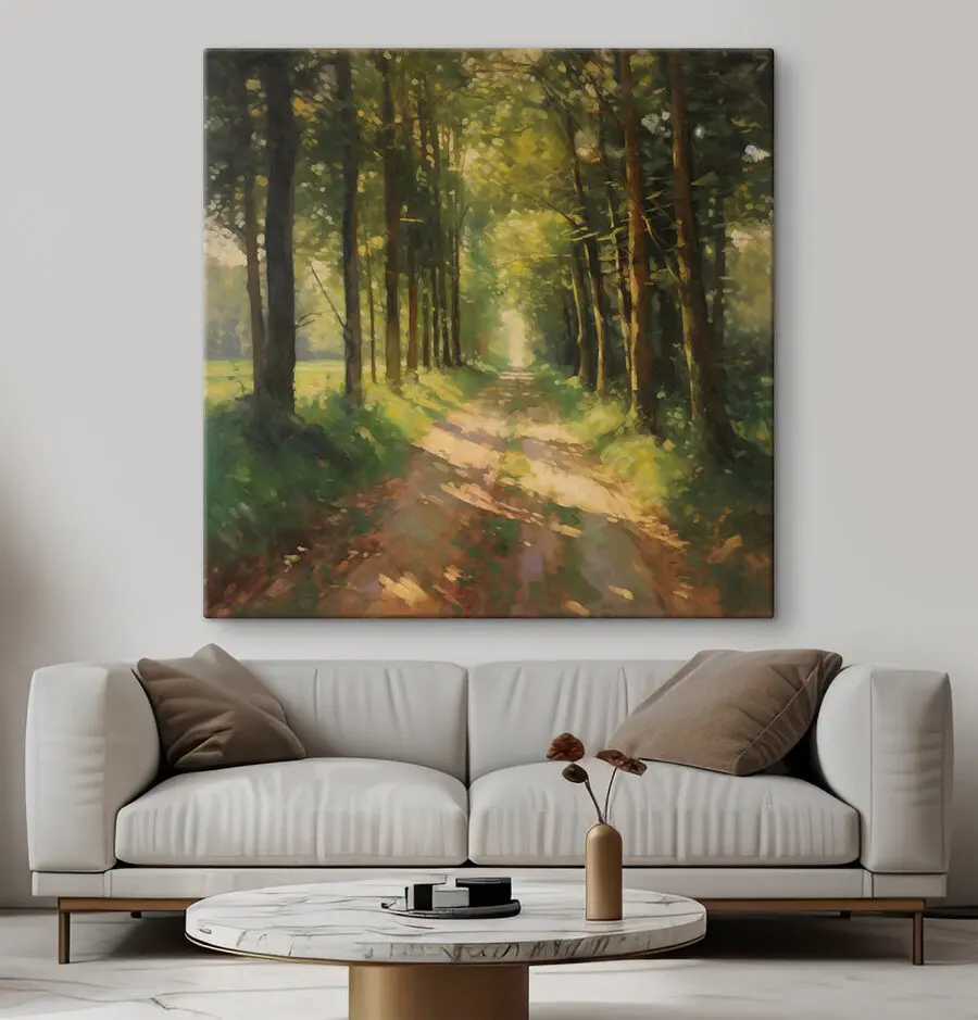 Wyobraź sobie, że wkraczasz do skąpanego w słońcu lasu, gdzie urocza polna droga zaprasza do wędrówki. Ten wydruk na płótnie “Dirt Road Through a Forest” doskonale oddaje ten magiczny moment. Żywa zieleń i ciepłe światło słoneczne tańczą na ścieżce, sprawiając, że czujesz się jak w sekretnej ucieczce w swoim domu. Wyobraź sobie przytulne wieczory spędzone na podziwianiu go, popijając ulubioną herbatę lub marząc o przygodach. To nie tylko sztuka; przekształca każdą ścianę w spokojne doświadczenie. Idealny dla miłośników przyrody lub każdego, kto potrzebuje odrobiny spokoju. Kto nie chciałby mieć kawałka wspaniałej przyrody w swoim wnętrzu?