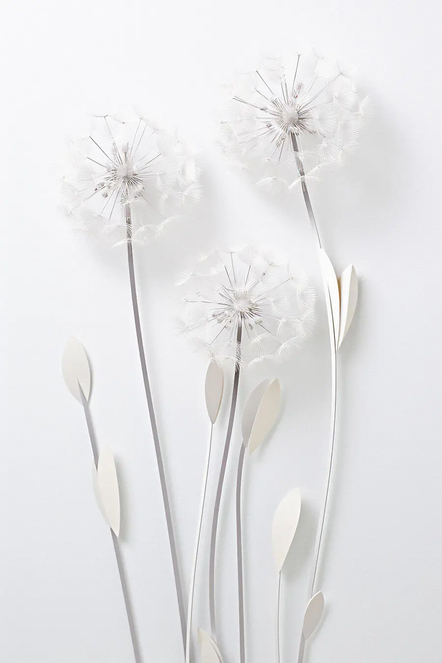 Rozjaśnij każdą przestrzeń dzięki temu czarującemu drukowi na płótnie przedstawiającemu delikatne mlecze na białym tle. To tak, jakby mali twórcy życzeń natury przybyli z wizytą, przynosząc poczucie spokoju i odrobinę kaprysu. Idealna do przytulnych zakątków lub stylowego salonu, ta grafika zachęca do marzeń i nostalgii – pamiętasz dmuchanie na te puszyste nasiona, mając nadzieję na spełnienie życzenia? Jego subtelne piękno doskonale komponuje się z każdym wystrojem, łącząc elegancję z nutą zabawy. Powieś go i pozwól mleczom wnieść odrobinę magii do codziennego życia.
