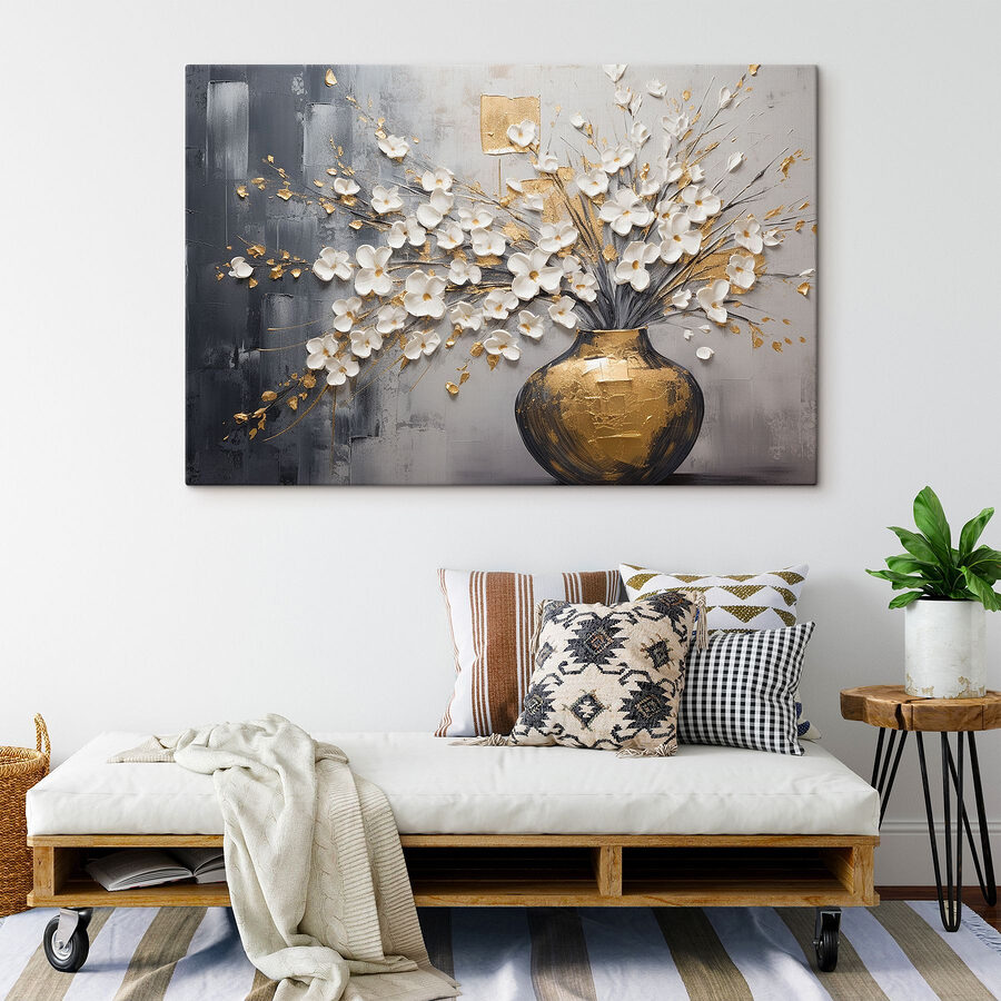 Rozjaśnij każde pomieszczenie dzięki temu wspaniałemu drukowi na płótnie przedstawiającemu bukiet kwiatów ułożonych w uroczym wazonie. Delikatne kwiaty tańczą na kojącym tle, natychmiast wprowadzając ciepło i radość do przestrzeni. Wyobraź sobie, jak przytulny może być ten obraz – idealny do przytulnych salonów lub cichych kącików do czytania. Znajomi mogą zapytać, czy z dnia na dzień stałeś się projektantem kwiatów. To jak mieć kawałek natury w domu, bez konieczności podlewania! Dzięki mieszance kolorów, która jest zarówno uspokajająca, jak i podnosząca na duchu, z pewnością będzie początkiem rozmowy w każdym domu.