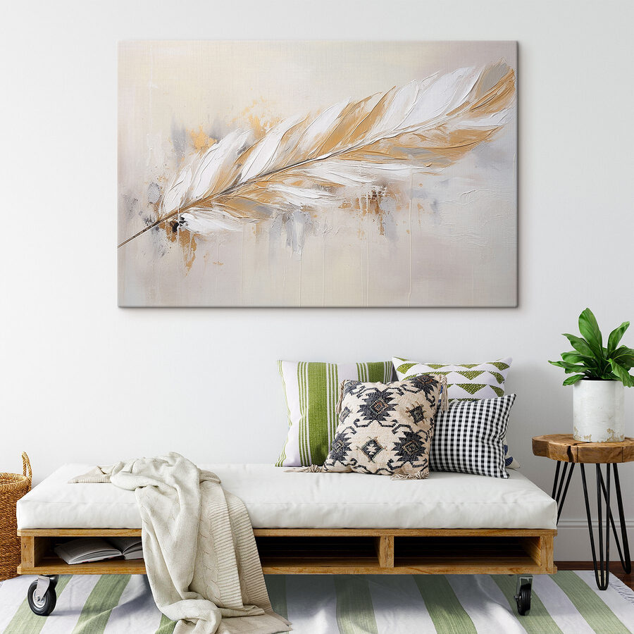 Przekształć każdą przestrzeń w przytulny azyl dzięki temu wspaniałemu drukowi na płótnie z delikatnym piórkiem na miękkim tle. To jak szept natury przeniesiony do wnętrza, idealny na te chwile, kiedy po prostu trzeba się zrelaksować i chłonąć piękno wokół siebie. Wyobraź go sobie w oświetlonym słońcem kąciku do czytania, gdzie może rozmyślać nad wyborem książki. Prostota projektu nadaje pomieszczeniu spokojną atmosferę, zabierając zmartwienia i odlatując – gdyby tylko prawdziwe życie mogło zrobić to samo. Dotyk natury bez konieczności podlewania roślin? Tak, proszę!