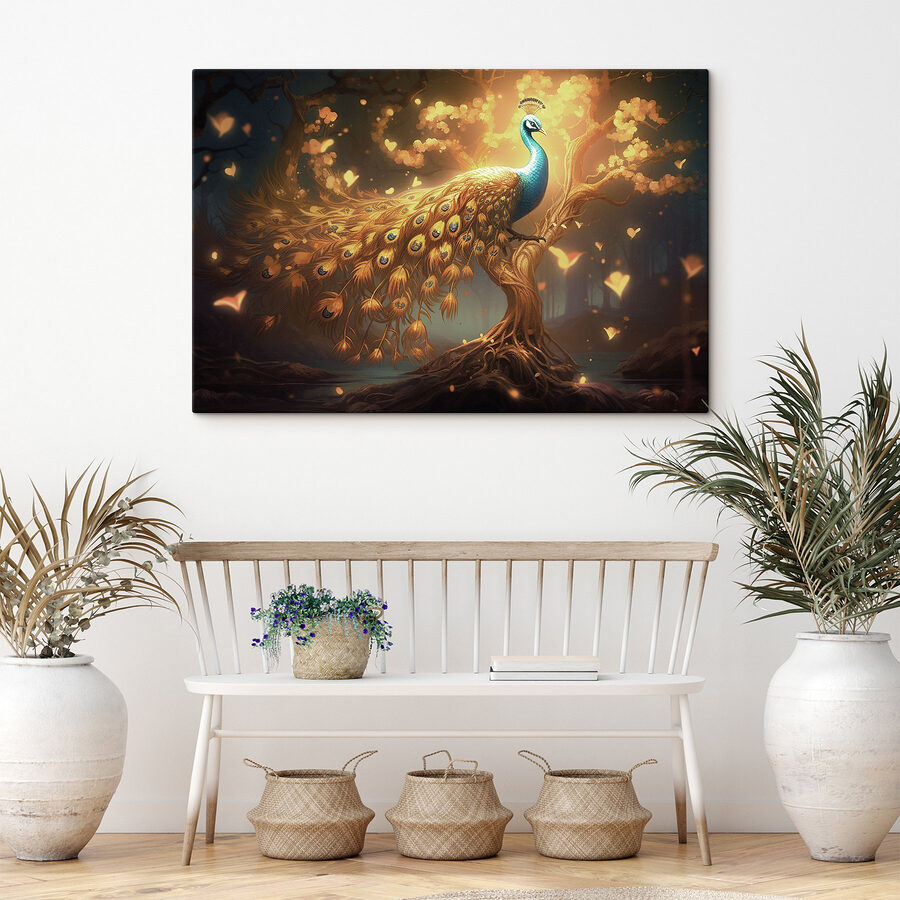 Przedstawiamy zachwycający wydruk na płótnie, który z pewnością oczaruje! “Obraz Peacock on a Tree” wnosi żywy kolor i urok do każdej przestrzeni. Wyobraź sobie tego majestatycznego pawia siedzącego na szczycie drzewa, obnoszącego się z tymi oszałamiającymi piórami, jakby były jego najlepszym niedzielnym strojem. Idealny dla miłośników natury i kapryśnego wystroju, ten obraz jest jak delikatny uścisk dla ścian. Wywołuje radość, a może nawet uśmiech – kto nie poczułby się trochę bardziej radośnie z tak żywą sztuką wokół? Niezależnie od tego, czy jest to przytulny salon, czy spokojna sypialnia, ta grafika dodaje wyjątkowego akcentu, który sprawia, że dom staje się domem. Daj głos swoim ścianom!