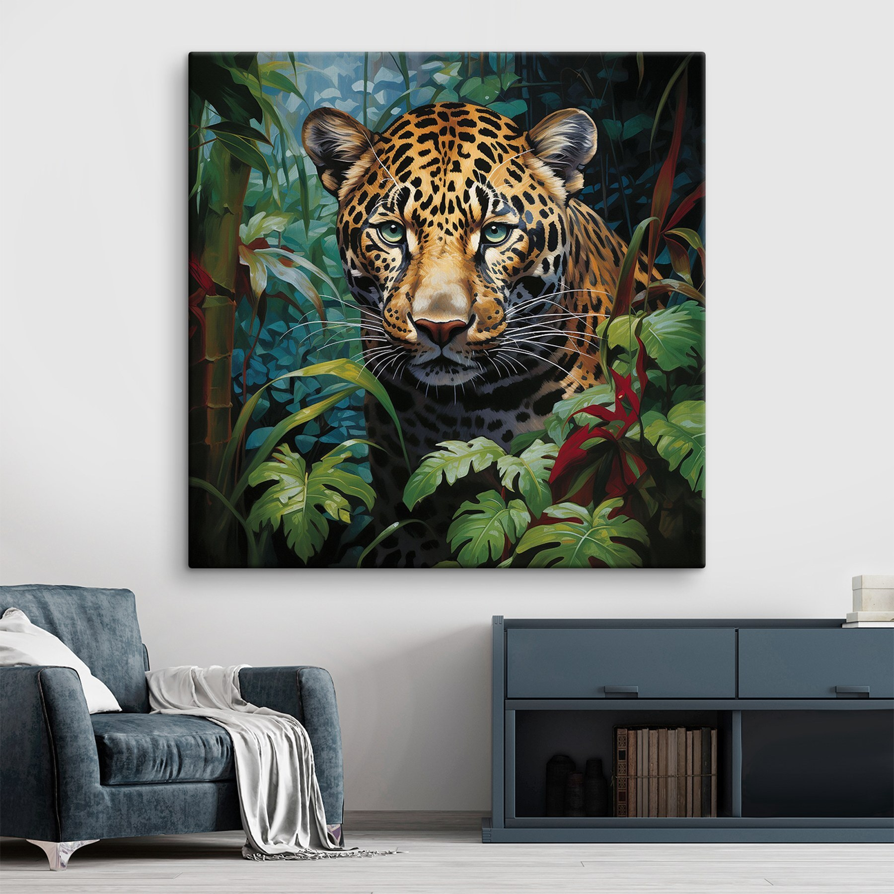 Wejdź w dziką naturę z obrazem “Obraz Leopard in the Jungle”! Wyobraź sobie, że ten oszałamiający obraz zdobi twoją ścianę – to tak, jakbyś miał miejsce w pierwszym rzędzie dramatu natury. Te przeszywające zielone oczy? Praktycznie podążają za tobą po pokoju, ośmielając cię do zapomnienia o tym, jak przytulna jest twoja kanapa.