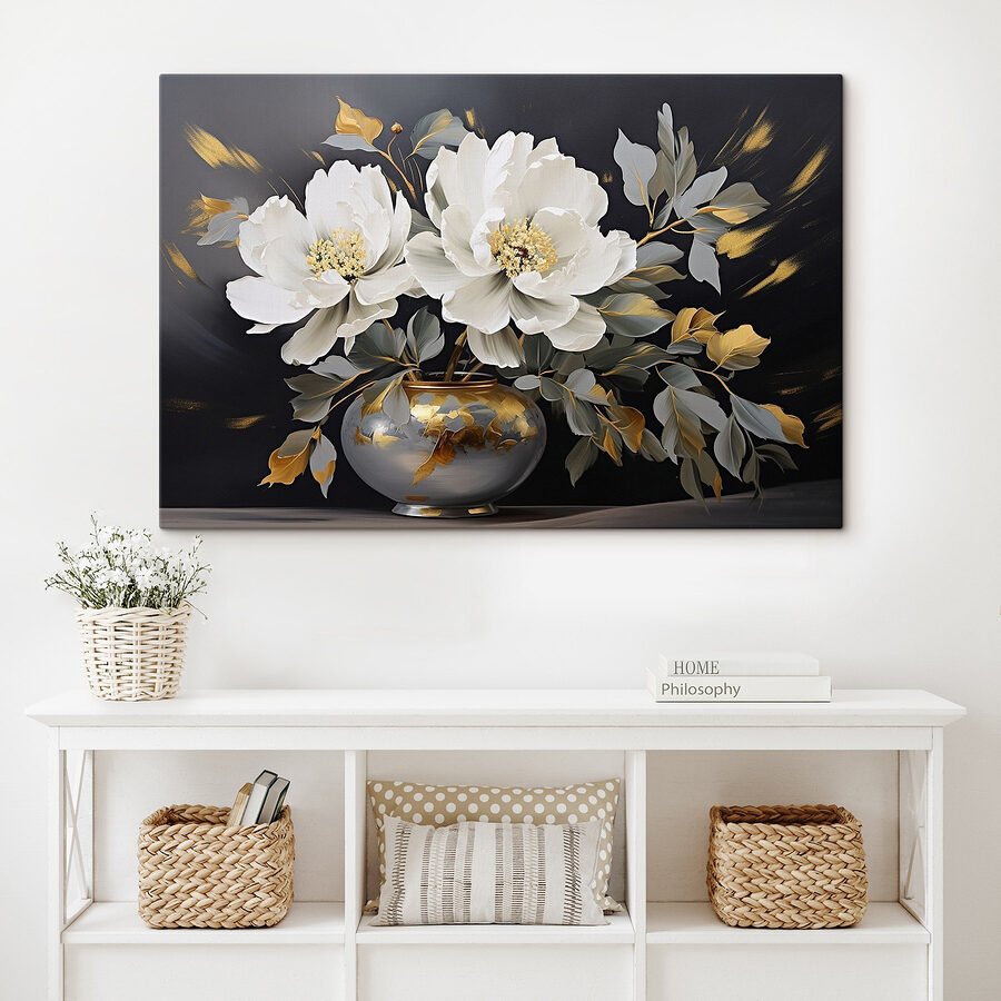 Odmień swoją przestrzeń dzięki temu wspaniałemu obrazowi na płótnie przedstawiającemu kwiaty w wazonie. Wyobraź sobie, że każdego dnia budzisz się z widokiem na te oszałamiające kwiaty – jak posiadanie świeżego bukietu bez podlewania i zmartwień! Delikatne kolory pięknie prezentują się na ciemnym tle, tworząc mały kącik radości w każdym pomieszczeniu. Idealny nad przytulnym kącikiem do czytania lub jako element dekoracyjny w salonie. To jak delikatny uścisk na ścianach, dodający ciepła i odrobiny natury, która po prostu dobrze się czuje. Ta sztuka sprawia, że każde spojrzenie jest nieco jaśniejsze – kto by tego nie chciał?