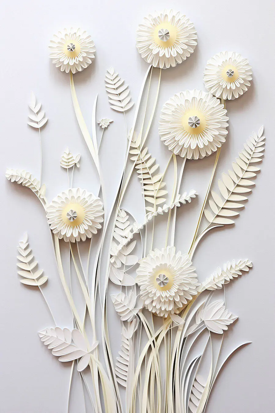 Odmień każdą przestrzeń dzięki “Obraz White Paper Cutout Flowers”. To jak zaproszenie wesołego ogrodu do swojego domu bez konieczności martwienia się o podlewanie! Te delikatne, warstwowe kwiaty wyróżniają się na tle wyrazistego płótna, dzięki czemu stanowią powiew świeżości na ścianach. Wyobraź sobie, że siedzisz w swoim ulubionym fotelu z książką w ręku, a delikatne odcienie tych kwiatów dodają pogodnego nastroju. Jest to idealne rozwiązanie do kącika, który chciałeś upiększyć lub jako wspaniała niespodzianka dla przyjaciela, który ceni sobie wyjątkowy wystrój. Delikatny ukłon w stronę piękna natury bez pyłków – czego tu nie kochać?
