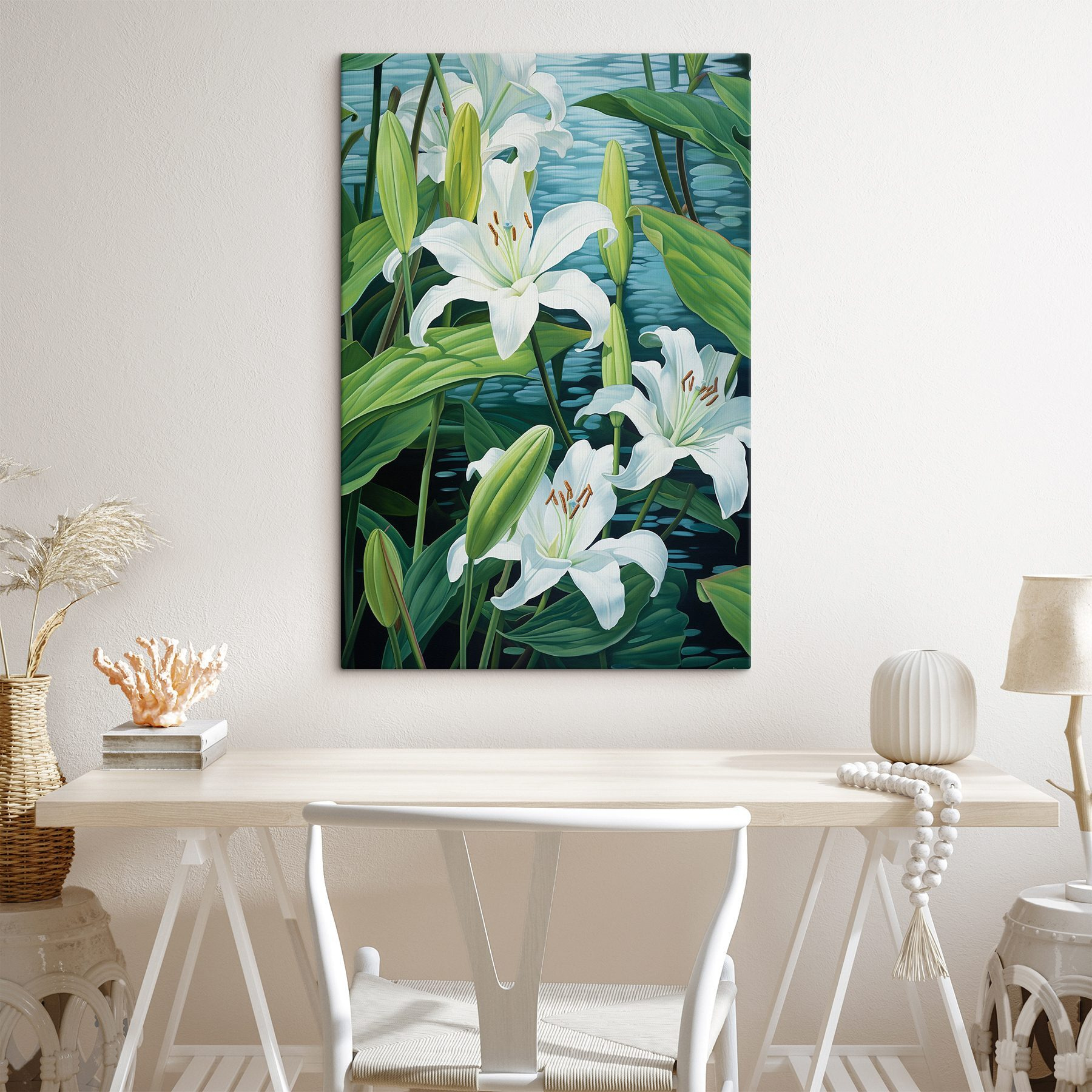Przekształć dowolną przestrzeń w spokojną oazę dzięki “Delicate Lilies in Serene Waters”. Wyobraź sobie te oszałamiające białe lilie delikatnie unoszące się na spokojnej wodzie – to jak własne dzieło sztuki na ścianie! Ten wydruk na płótnie to nie tylko dekoracja; to powiew świeżego powietrza. Wyobraź sobie, że przytulasz się z filiżanką herbaty, wpatrujesz się w te kwiaty i czujesz, jak ogarnia Cię spokój. Idealny do salonu, sypialni, a nawet tej jednej ściany, która zawsze wydaje się zbyt goła. To początek rozmowy, induktor marzeń i tak, natychmiastowy wzmacniacz nastroju! Kto by tego nie chciał?