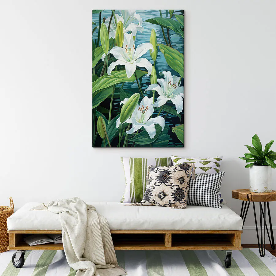 Przekształć dowolną przestrzeń w spokojną oazę dzięki “Delicate Lilies in Serene Waters”. Wyobraź sobie te oszałamiające białe lilie delikatnie unoszące się na spokojnej wodzie – to jak własne dzieło sztuki na ścianie! Ten wydruk na płótnie to nie tylko dekoracja; to powiew świeżego powietrza. Wyobraź sobie, że przytulasz się z filiżanką herbaty, wpatrujesz się w te kwiaty i czujesz, jak ogarnia Cię spokój. Idealny do salonu, sypialni, a nawet tej jednej ściany, która zawsze wydaje się zbyt goła. To początek rozmowy, induktor marzeń i tak, natychmiastowy wzmacniacz nastroju! Kto by tego nie chciał?