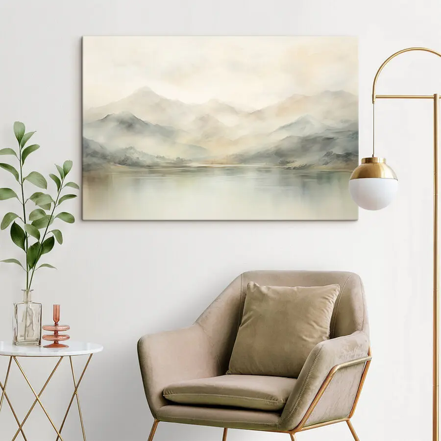 Zanurz swoją przestrzeń w spokojnej atmosferze dzięki temu wspaniałemu akwarelowemu płótnu, przedstawiającemu spokojne jezioro otoczone majestatycznymi górami. To jak mini ucieczka na łono natury – nie wymaga butów turystycznych. Delikatne, marzycielskie kolory tworzą uspokajającą atmosferę, idealną na te chwile, kiedy odrobina spokoju jest właśnie tym, co zalecił lekarz. Wyobraź sobie, że popijasz kawę, podziwiając ten oszałamiający widok lub używasz go jako tła do znaczących rozmów z przyjaciółmi. Sprawi, że każda ściana poczuje się jak okno na wspaniałą przyrodę – kto by tego nie chciał? Ponadto jest to łatwy sposób na podniesienie jakości wystroju. Delikatne przypomnienie, że piękno można znaleźć w prostocie.