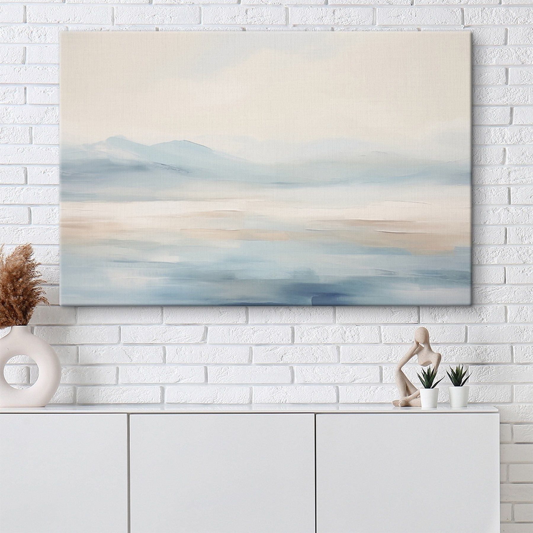 Odmień swoją przestrzeń dzięki temu wspaniałemu drukowi na płótnie przedstawiającemu pogodny krajobraz z odległymi górami. Czujesz się jak powiew świeżego powietrza, prawda? Delikatne błękity i miękkie odcienie ziemi obmywają cię, prawie jak uspokajająca bryza oceanu. Wyobraź sobie, że popijasz poranną kawę przed tym pięknem, pozwalając umysłowi wędrować po spokojnych szlakach i szeroko otwartym niebie. Jest idealny do dodania odrobiny natury do każdego pomieszczenia, sprawiając, że nudne ściany będą śpiewać. Niezależnie od tego, czy jest to salon, sypialnia, czy gdziekolwiek indziej, ten element zachęca do relaksu i marzeń o przygodach – bez wychodzenia z domu.