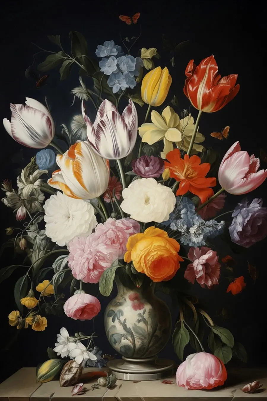Rozjaśnij każdą przestrzeń dzięki obrazowi na płótnie “Vase of Flowers with Butterflies”. Ten oszałamiający obraz przedstawia tętniący życiem bukiet, który sprawia wrażenie przyjęcia w ogrodzie bezpośrednio na ścianie. Wyobraź sobie radosne kolory tańczące razem lub jak te motyle mogą po prostu odfrunąć, jeśli wietrzyk uderzy w prawo – malując scenę tak żywą, że niemal szepcze tajemnice wiosny. Mieszanka kwiatów wywołuje uczucie ciepła i radości, dzięki czemu idealnie nadaje się do przytulnych zakątków lub miejsca nad kanapą, które potrzebuje trochę miłości. To więcej niż sztuka; to odrobina uroku natury w samym domu. Chwyć więc filiżankę herbaty, zatop się w klimacie i pozwól, by to kwiatowe piękno zmieniło twoją przestrzeń w małą oazę. Kto by pomyślał, że wystrój może być tak zachwycający?