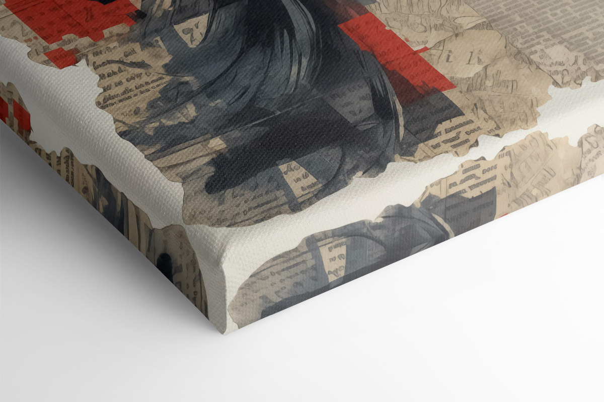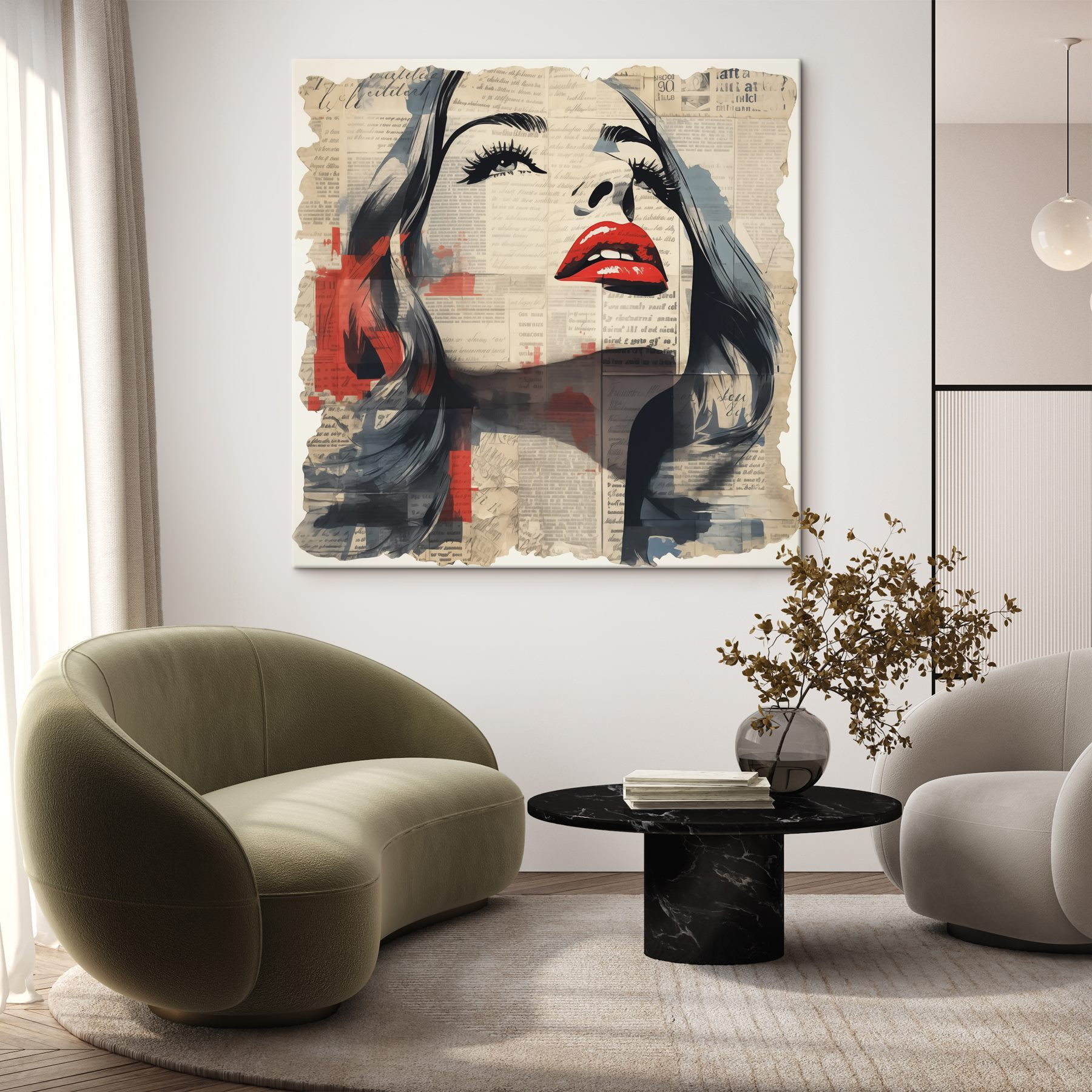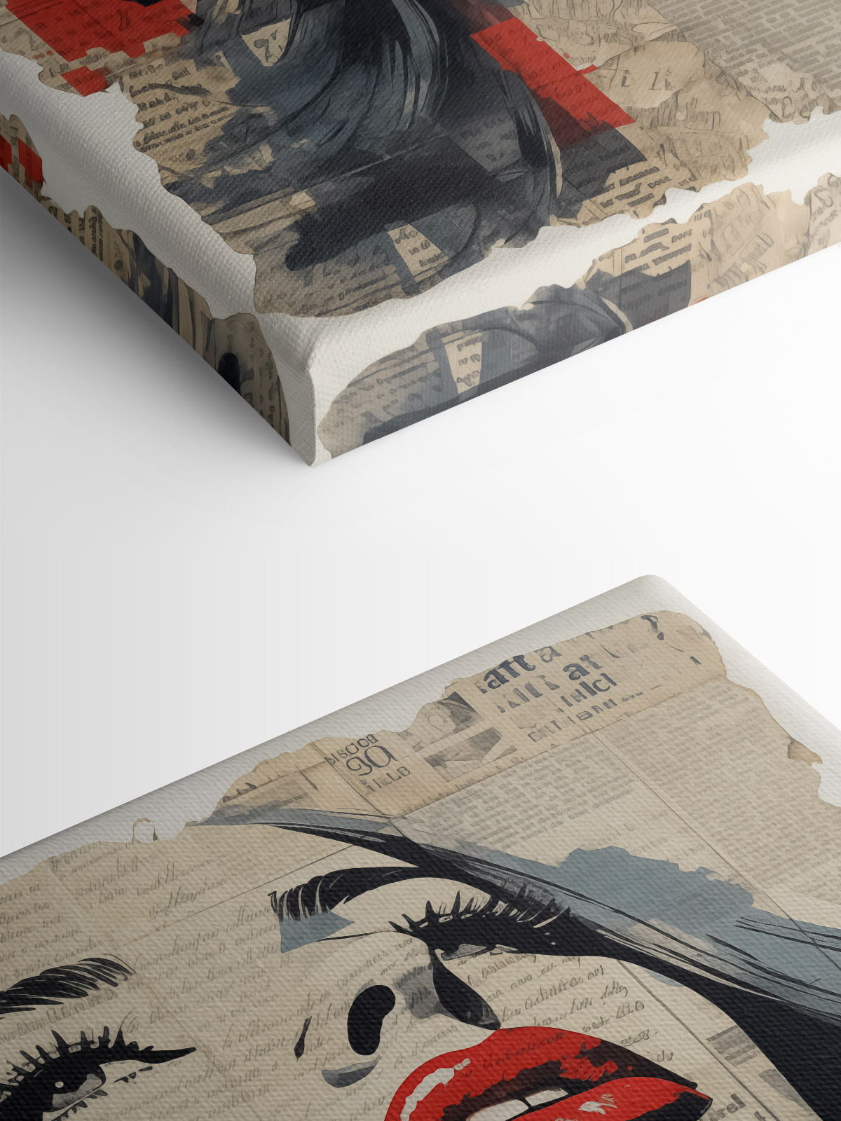 Odmień każde pomieszczenie dzięki temu efektownemu obrazowi na płótnie zatytułowanemu “Woman’s Face Painted on Newspaper”. Jest to powalające dzieło, które natychmiast przyciąga wzrok, łącząc klasyczne piękno z ostrym klimatem starych stron. Wyobraź go sobie nad przytulnym kącikiem do czytania lub w eleganckim korytarzu – po prostu pobudza do rozmów. Odważne czerwone usta wyskakują na miękkim, stonowanym tle, dając smak glamour, jednocześnie szepcząc historie minionych dni.