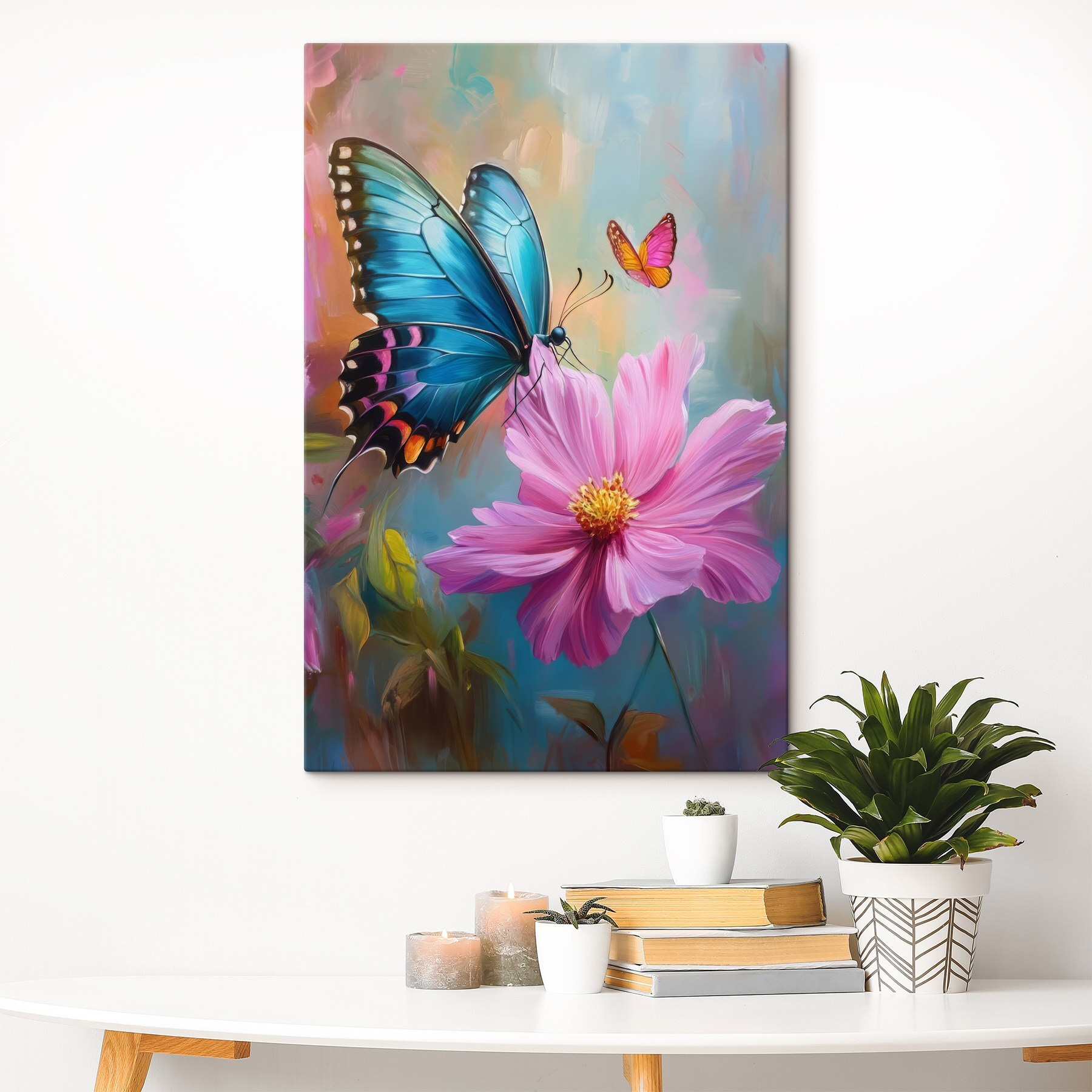 Odmień każde pomieszczenie dzięki czarującemu obrazowi na płótnie “Butterfly on a Flower”. Wyobraź sobie, że wchodzisz do swojego pokoju i witają Cię żywe odcienie błękitu i różu, motyl delikatnie siedzący na kwitnącym kwiecie. To tak, jakby natura postanowiła wpaść do twojego salonu na pogawędkę! Obraz ten oddaje piękno i kapryśność wspaniałej przyrody, przynosząc natychmiastową poprawę nastroju. Idealny do przytulnego kącika, a nawet pokoju dziecięcego, zachęca do marzeń o słonecznych ogrodach i leniwych popołudniach. Więc powieś go, weź głęboki oddech i pozwól, aby piękno wiosny wypełniło Twój dom przez cały rok!