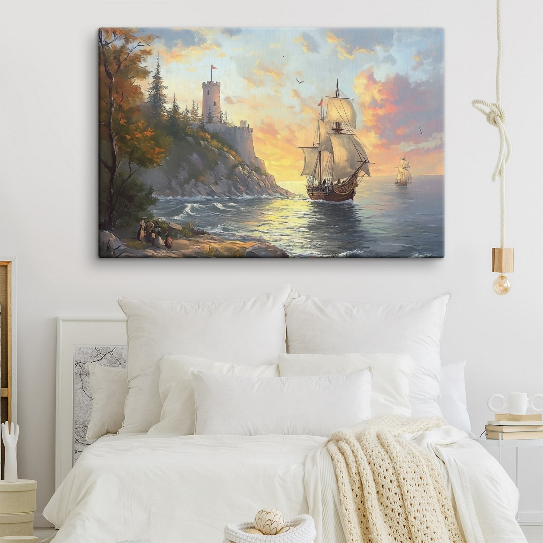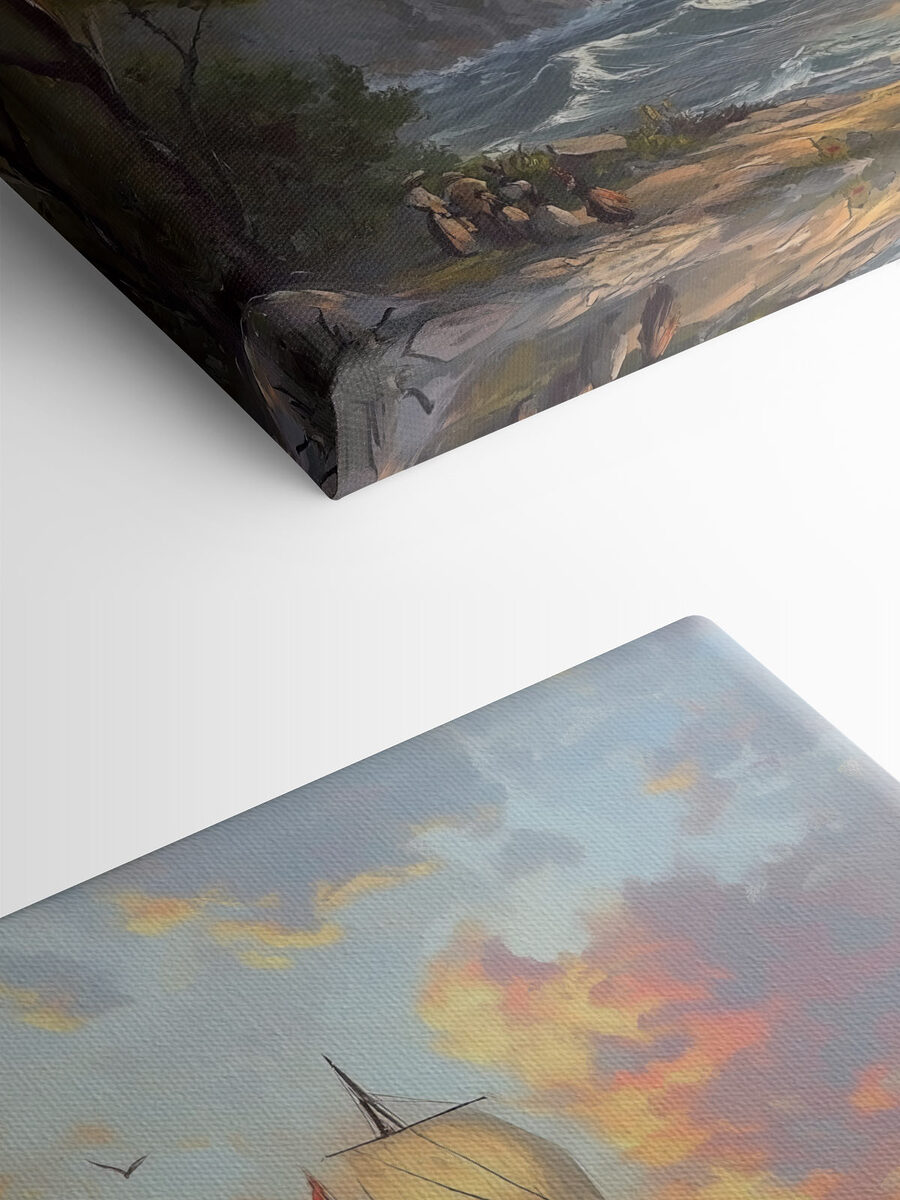 Wyobraź sobie ten wspaniały wydruk na płótnie wiszący na ścianie, przedstawiający statek z gracją płynący po lśniących wodach pod zapierającym dech w piersiach niebem. To jak okno na morze, przynoszące kawałek przygody prosto do twojego salonu. Wyobraź sobie przechadzających się przyjaciół, których oczy rozszerzają się, gdy gubią się w kolorach – delikatnych błękitach, ciepłych pomarańczach i nutach natury wszędzie. Idealny na jedną ścianę, która potrzebuje trochę miłości, lub jako kojący punkt centralny w przytulnym zakątku, ten element nie tylko dodaje uroku, ale także zachęca do marzeń o odległych wybrzeżach i oceanicznej bryzie. Zdecydowanie początek rozmowy!