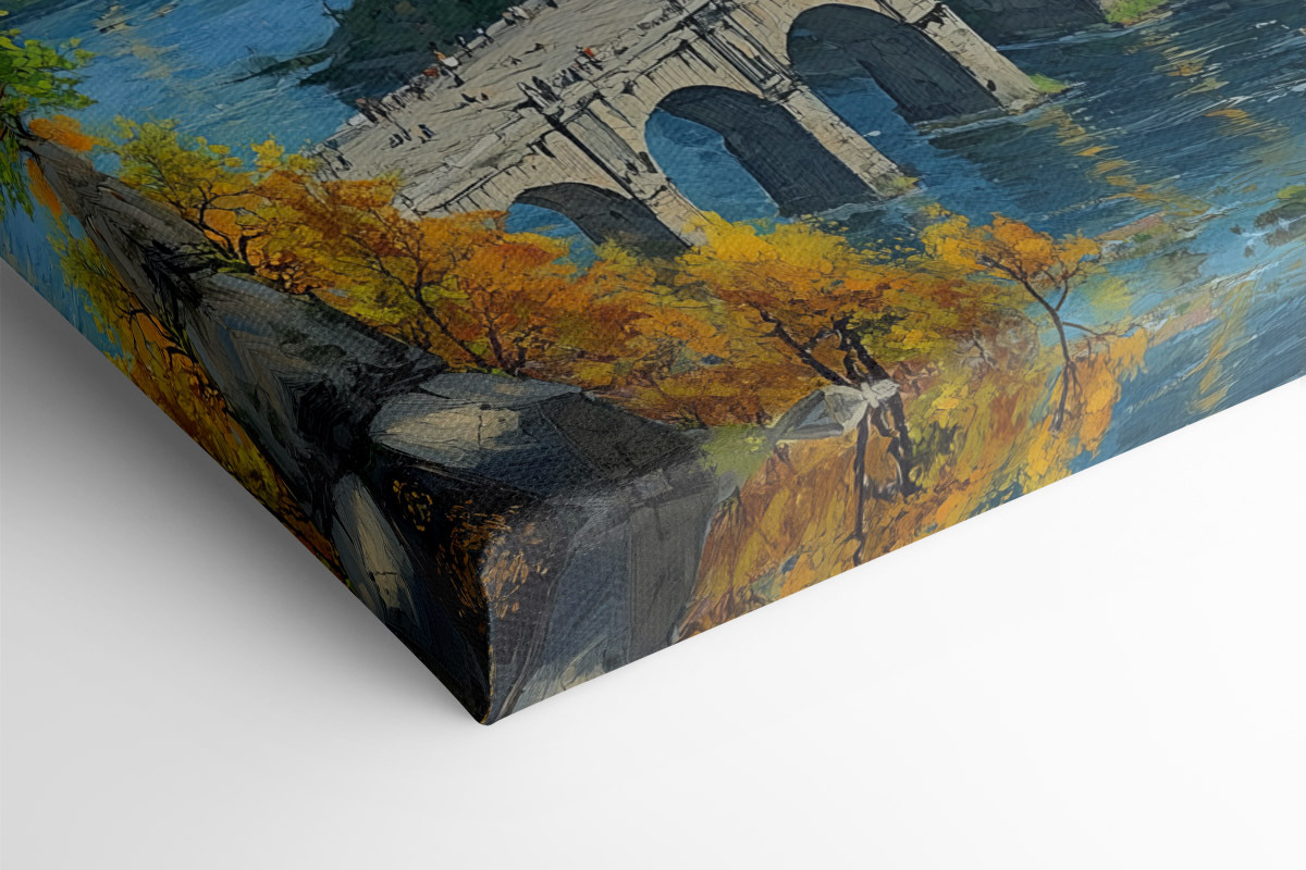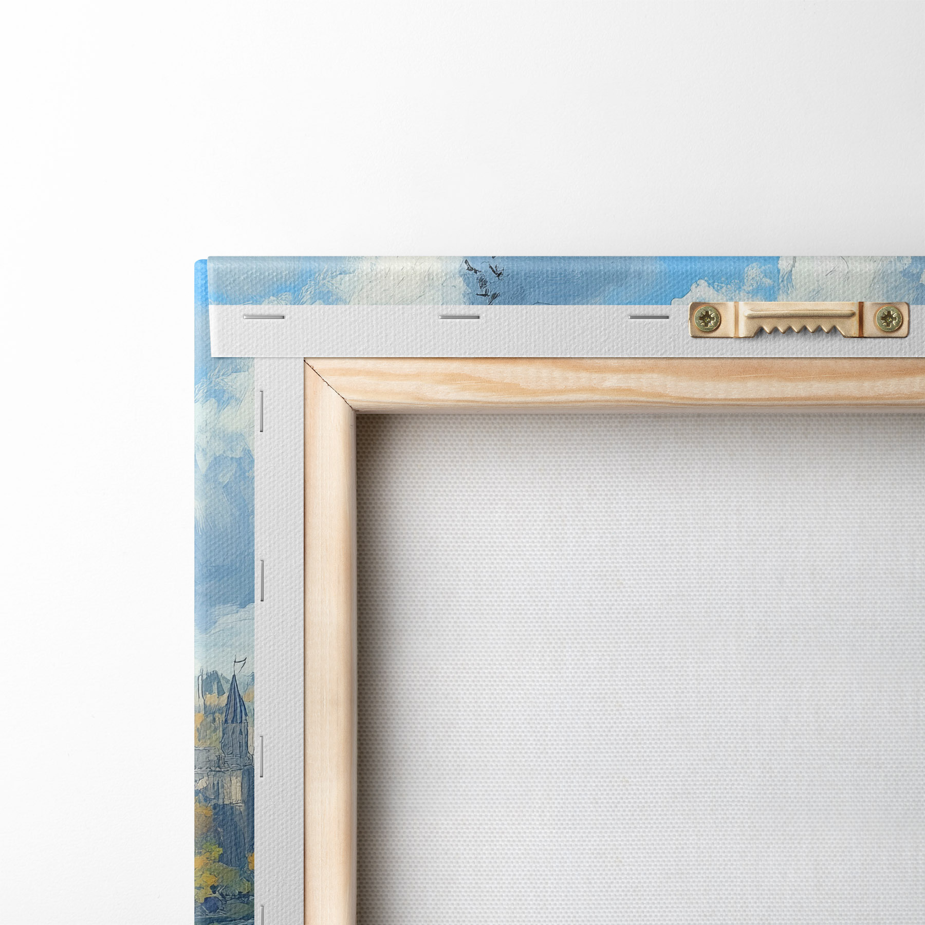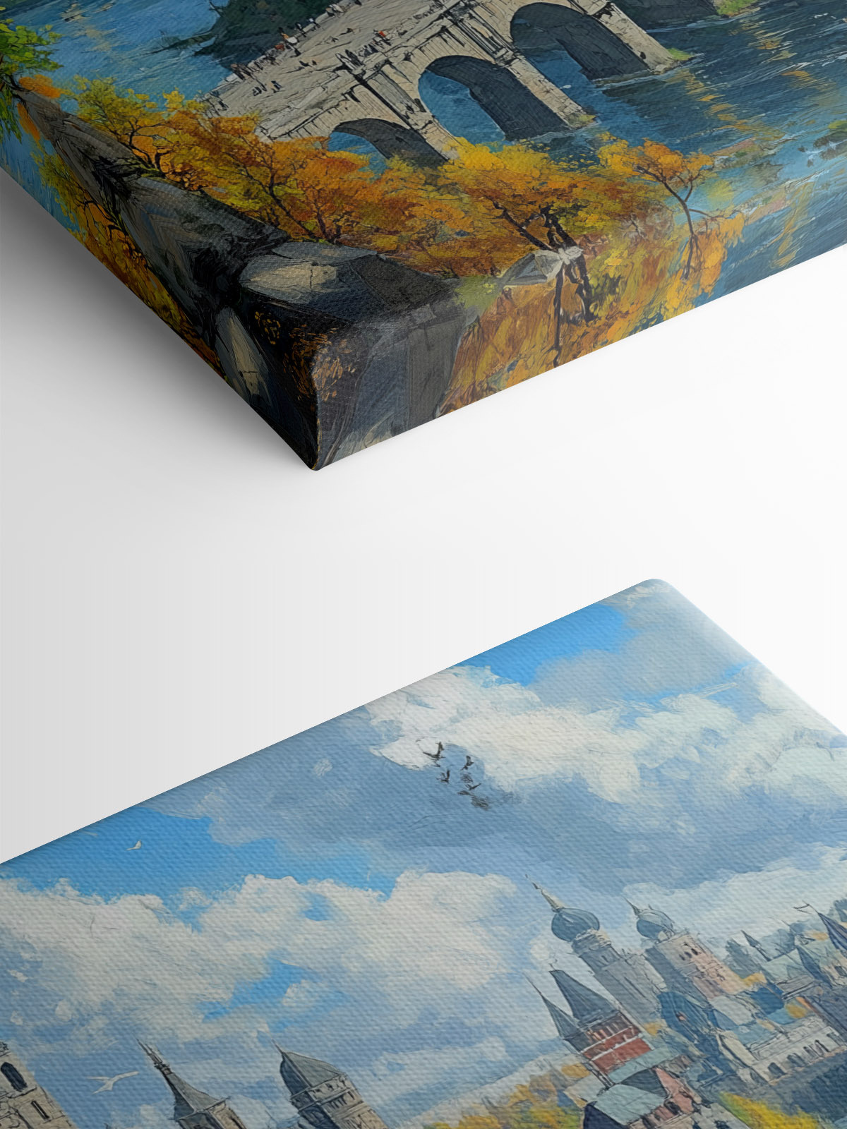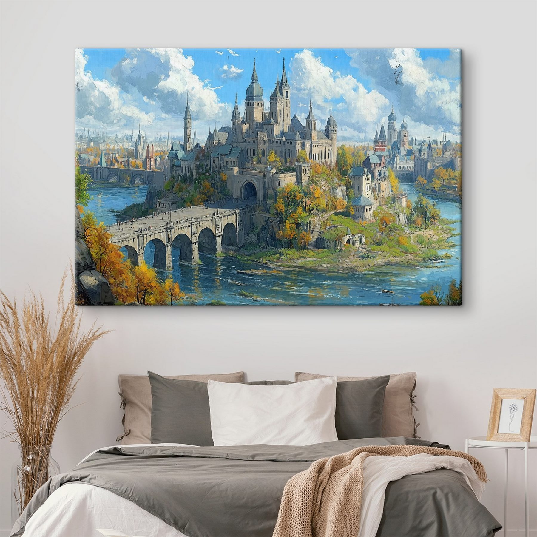 Wyobraź sobie, że przenosisz się do baśni za każdym razem, gdy patrzysz na ten wspaniały obraz na płótnie. “Castle on a Hill with a Bridge Over Water” oferuje senną ucieczkę do świata, w którym zamki stoją królewsko, położone wśród żywych jesiennych liści. Delikatny przepływ wody pod mostem zachęca do chwili przerwy, a może nawet do chichotu na myśl o rybach poniżej zastanawiających się nad tętniącymi życiem ludźmi powyżej. To prawie tak, jakby zamek szeptał historie z przeszłości – przygody, które tylko czekają, aby pobudzić wyobraźnię. Idealna do zainicjowania rozmów lub po prostu dodania odrobiny magii do każdej ściany, ta grafika wnosi ciepło i cudowność do przestrzeni, sprawiając, że czujesz się jak w domu. Dlaczego nie dać się porwać, choćby na chwilę?