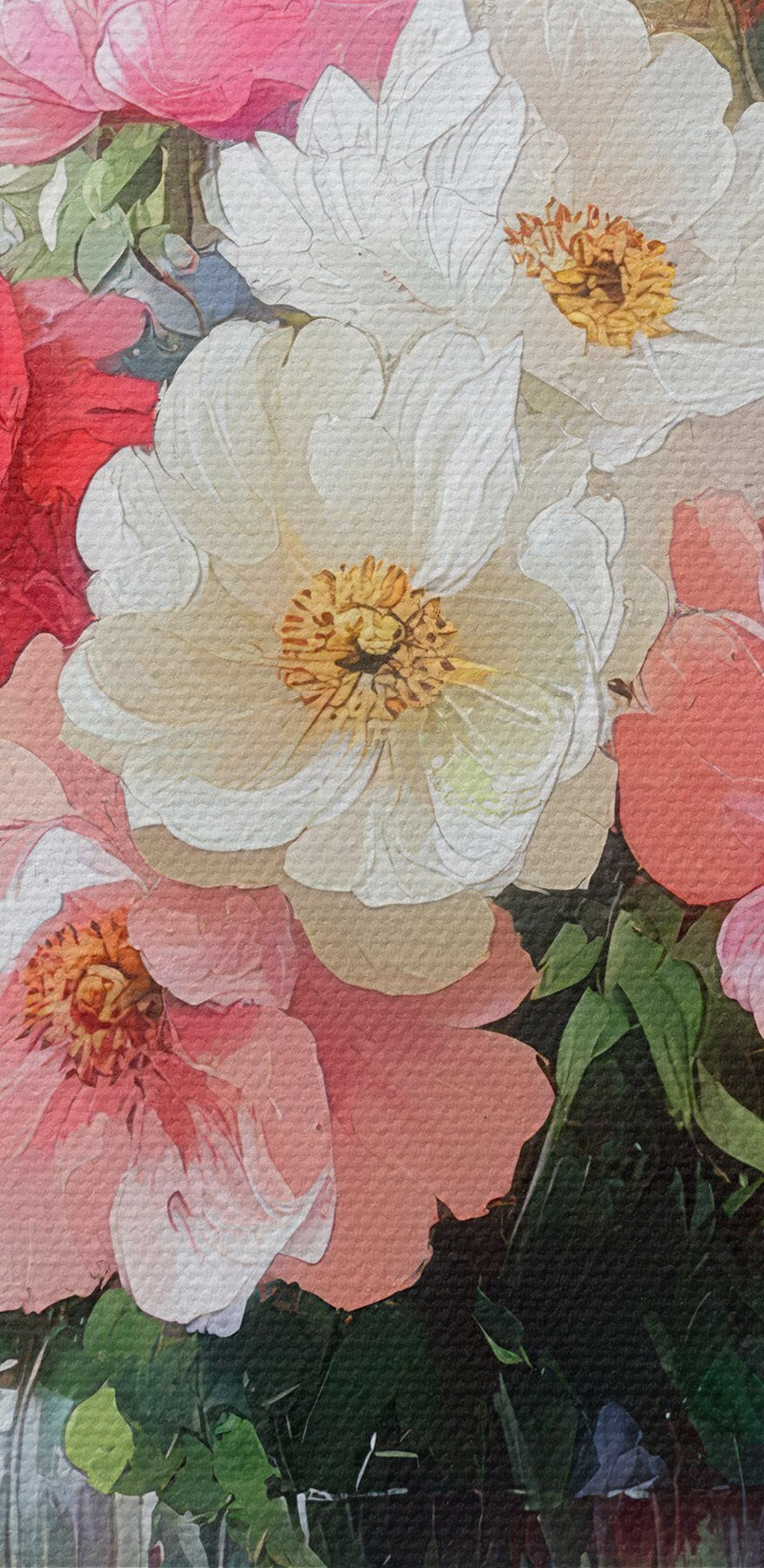 Rozjaśnij każde pomieszczenie dzięki temu wspaniałemu obrazowi na płótnie przedstawiającemu kwiaty w wazonie. To jak przeniesienie małego ogrodu do domu bez konieczności posiadania zielonego kciuka lub konewki – wynik! Żywe kolory i miękkie, malarskie pociągnięcia zachęcają do ciepła i radości, idealne na te chwile, kiedy potrzebujesz odrobiny uroku natury. Wyobraź sobie, że gościsz przyjaciół, a oni nie mogą powstrzymać się od podziwiania go, wywołując rozkoszne rozmowy o letnich dniach. To po prostu wizualna uczta, która może wywołać uśmiech nawet w deszczowe popołudnia. Kto mógłby odmówić?