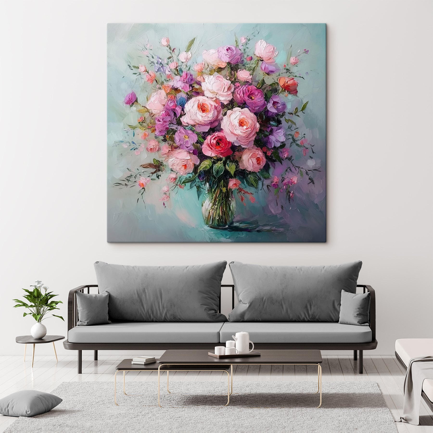 Odmień swoją przestrzeń dzięki temu wspaniałemu wydrukowi na płótnie zatytułowanemu “Obraz Painting of flowers in a vase”. Wyobraź sobie, że każdego dnia budzisz się w otoczeniu różu i fioletu, niczym na przyjęciu w ogrodzie. To żywy, świeży klimat – prawie tak, jakby kwiaty szeptały tajemnice wiosny. Idealny do rozjaśnienia przytulnego kąta, a nawet udrapowania na nudnej kanapie, ten kawałek dodaje ciepła i uroku bez słowa. Znajomi mogą nawet zapytać, czy w domu nie ukrywa się kwiaciarnia! Wyobraź sobie: relaksujący wieczór z książką, delikatne światło i te wspaniałe kwiaty, które dodają ci otuchy. Nie sposób się nie uśmiechnąć!