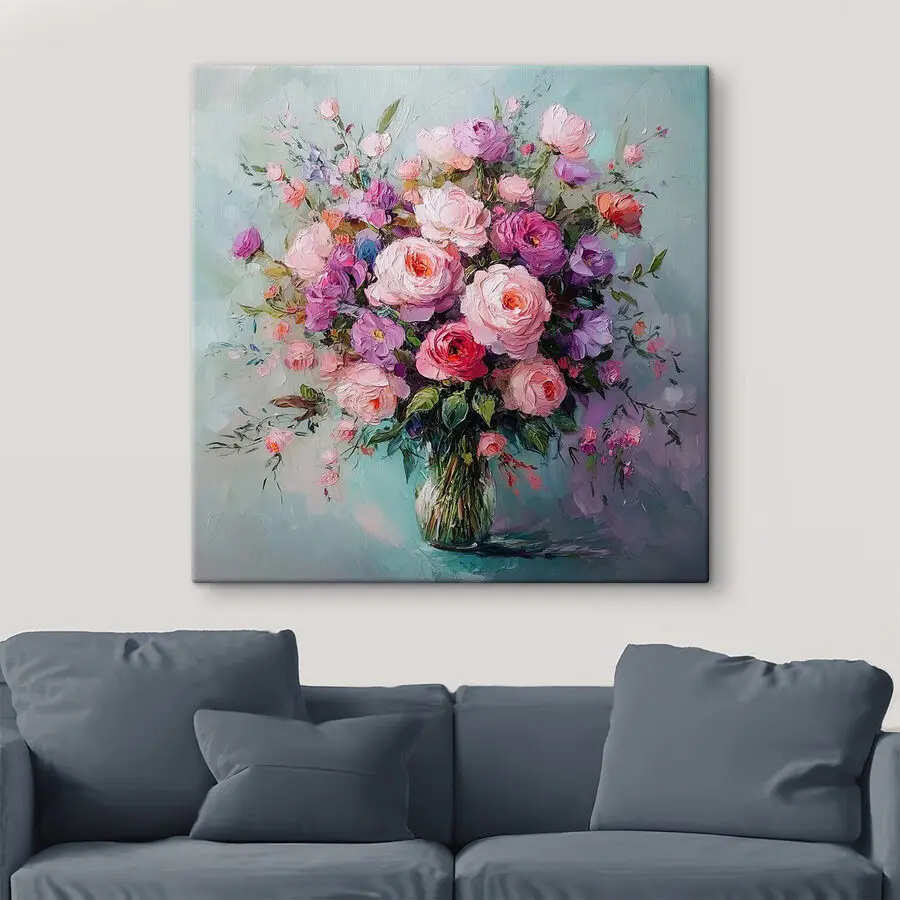 Odmień swoją przestrzeń dzięki temu wspaniałemu wydrukowi na płótnie zatytułowanemu “Obraz Painting of flowers in a vase”. Wyobraź sobie, że każdego dnia budzisz się w otoczeniu różu i fioletu, niczym na przyjęciu w ogrodzie. To żywy, świeży klimat – prawie tak, jakby kwiaty szeptały tajemnice wiosny. Idealny do rozjaśnienia przytulnego kąta, a nawet udrapowania na nudnej kanapie, ten kawałek dodaje ciepła i uroku bez słowa. Znajomi mogą nawet zapytać, czy w domu nie ukrywa się kwiaciarnia! Wyobraź sobie: relaksujący wieczór z książką, delikatne światło i te wspaniałe kwiaty, które dodają ci otuchy. Nie sposób się nie uśmiechnąć!