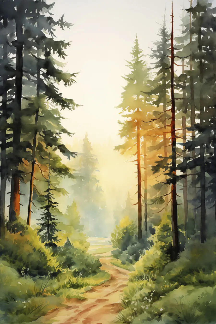 Odmień swoją przestrzeń dzięki temu oszałamiającemu akwarelowemu obrazowi przedstawiającemu spokojny las. To jak wejście na spokojny spacer wśród szepczących drzew i miękkiego światła słonecznego filtrującego przez liście. Ten druk na płótnie oddaje istotę natury, wprowadzając ciepłą, pogodną atmosferę do każdego pomieszczenia. Wyobraź sobie, że popijasz poranną kawę, patrząc na ścieżkę wijącą się wśród bujnej zieleni – to natychmiastowa poprawa nastroju! Idealny do przytulnych zakątków lub przestronnych salonów, zachęca do marzeń i daje odrobinę radości. Odrobina życia na świeżym powietrzu, bez insektów!